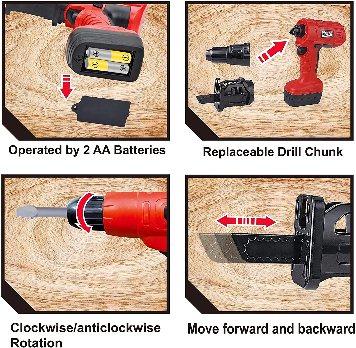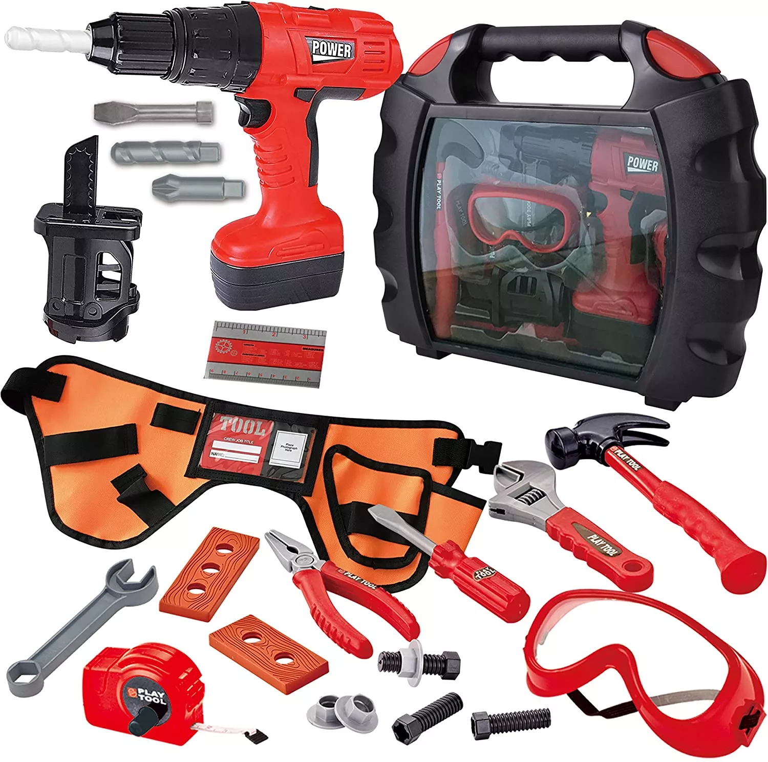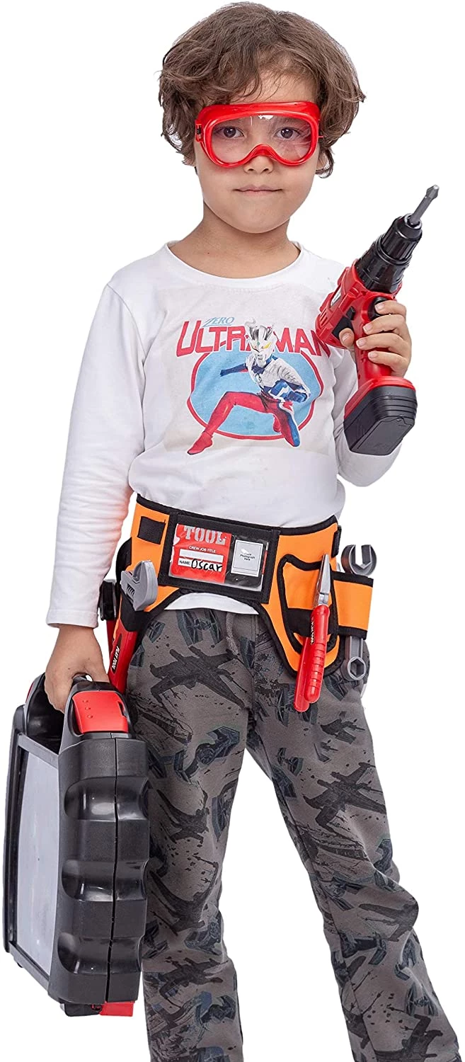 Набор, в котором есть дрель, издающая характерные звуки и движения. Множество болтиков и гаек, очки и даже пояс, на котором можно написать свое имя. У пояса легко регулируется размер. Хорошо развивает моторику, логику, сообразительность и просто привлекает внимание ребенка. Этот набор инструментов заинтересует даже самого усидчивого ребенка, и привлечет к активной и веселой игре. Весь набор продуман так, чтобы все инструменты и мелкие детали были максимально схожи с реальными инструментами.