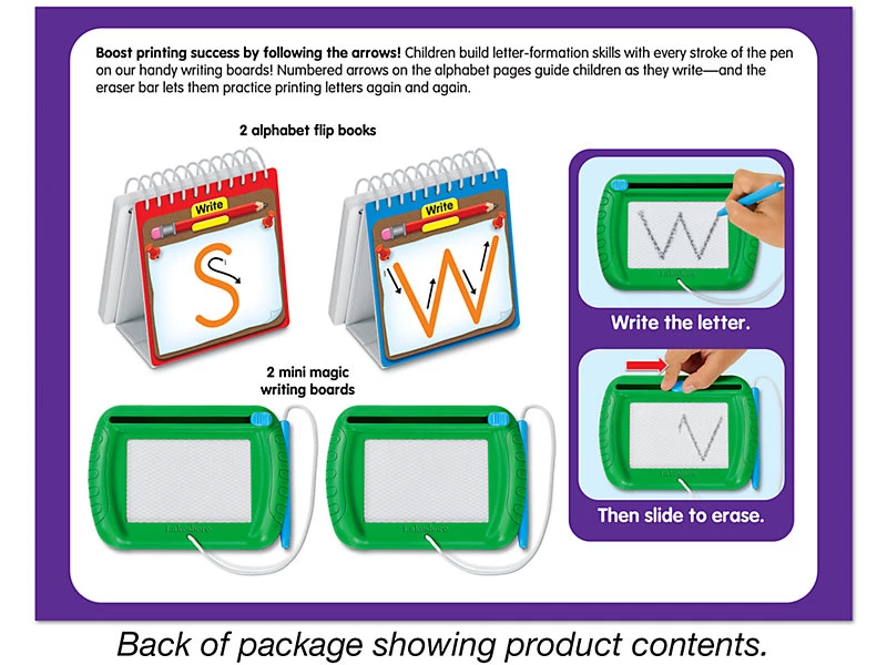 Учится писать буквы это весело и увлекательно. Дети смотрят как пишутся буквы в флип блокноте и пишут их на доске. Доска "волшебная" - с помощью бегунка можно легко стереть написанное и продолжить обучение.