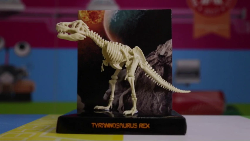 С этим набором, каждый ребенок почувствует себя на стоящим палеонтологом, и найдет останки тираннозавра. Раскопав все кости, можно составите модель скелета 21 см в высоту.