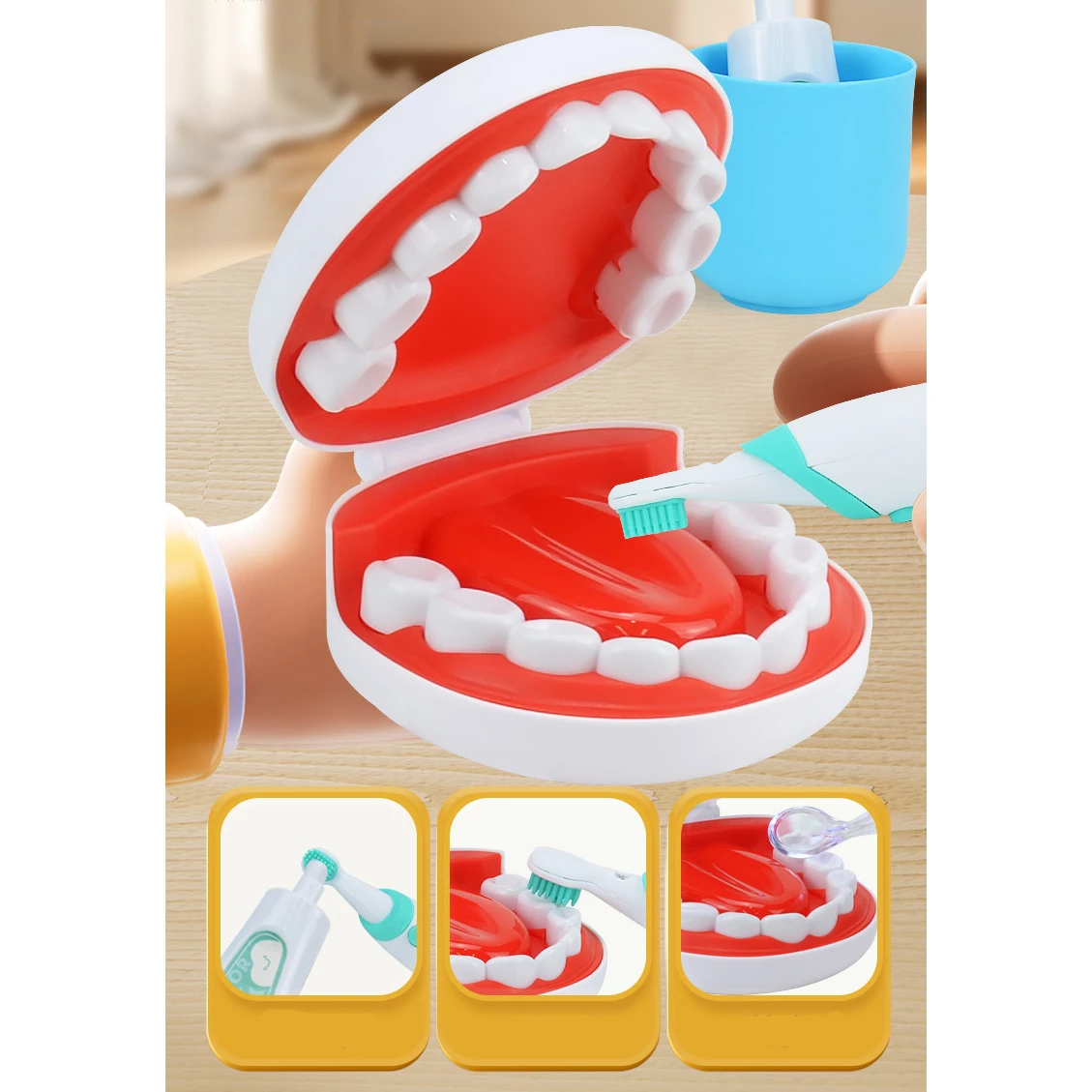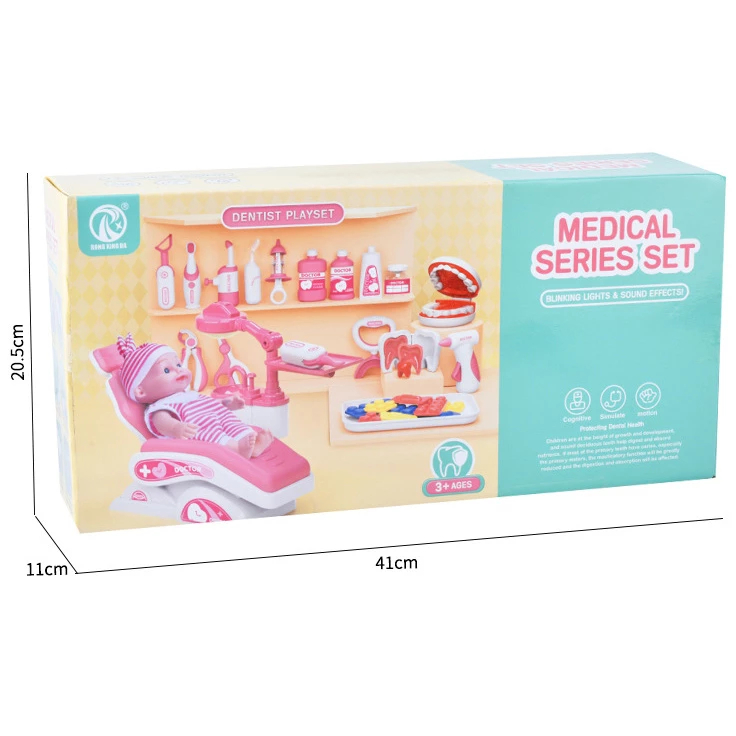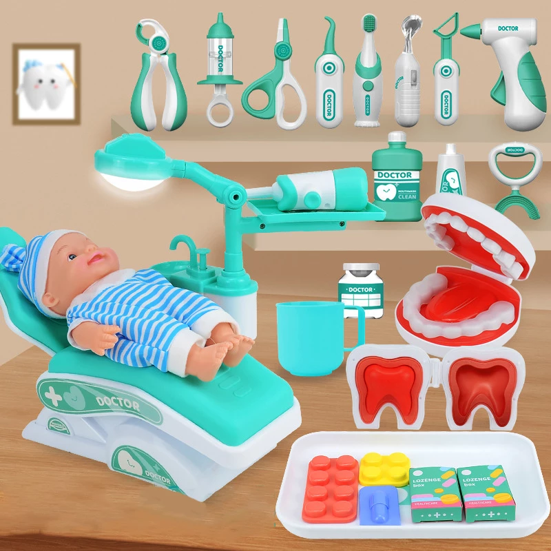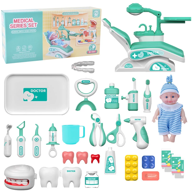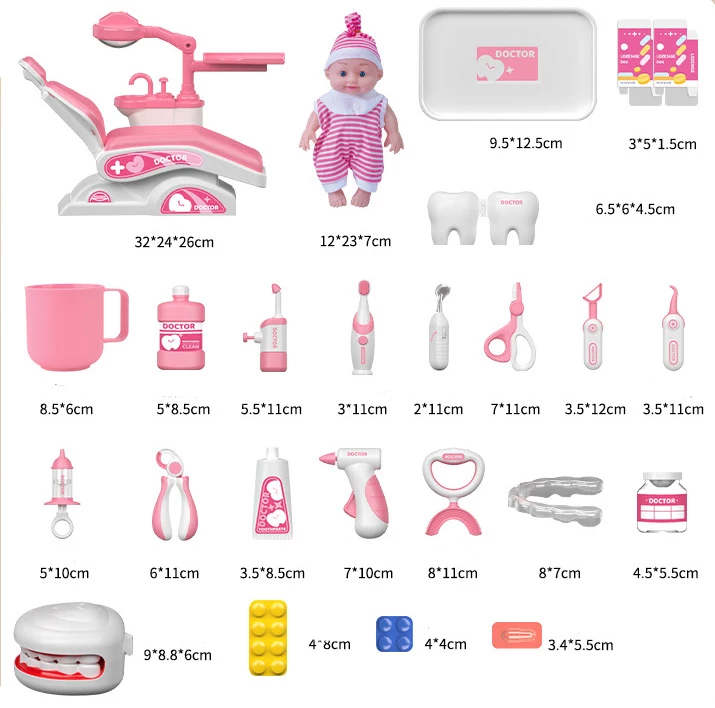 Набор для маленького стоматолога с первого взгляда понравиться ребенку. Большое количество разных предметов увлекут ребенка в интересную и реалистичную игру. Кукла, стоматологическое кресло, стетоскоп, шприц, пинцет, разные бутылочки, зубная щетка и еще много других предметов. Этот набор идеально поможет убедить ребенка перестать бояться врачей и без страха ходить на обследования.