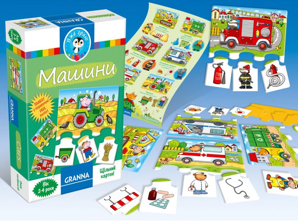 Узнавать названия машин и какую роль они играют в жизни человека с пазл-лото увлекательно и весело. Для детей 2 - 4 лет. Для 1-4 игроков.