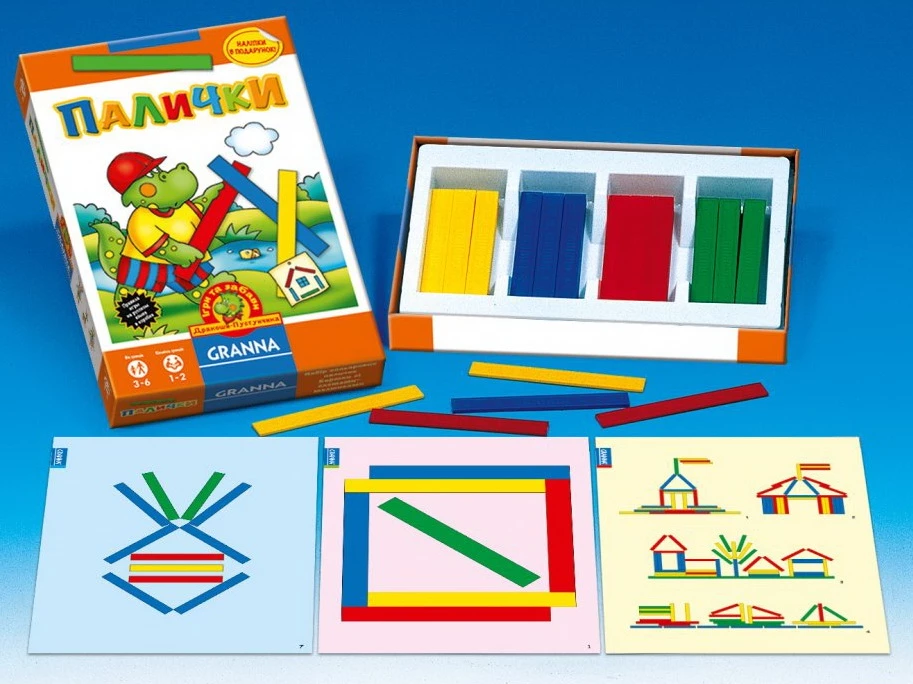 - 48 палочек 4-х цветов: желтые, красные, синие, зеленые,