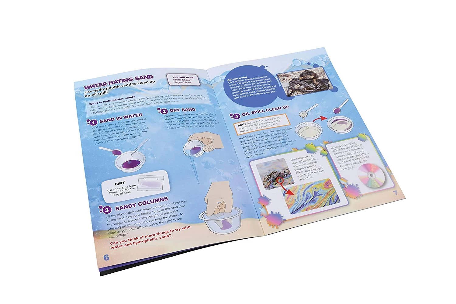 Что может очистить разливы нефти, защитить нас от ультрафиолетовых лучей и питания дисплеев на наших сотовых телефонах? Нанонаука! Эксперименты Nanoscience Lab очень просты в понимании и реализации, используя цветной иллюстрированный буклет. Создайте летающую радужную бабочку, липучую фигурку геккона, модель ДНК, эксперименты с жидким кристаллом, мыльную пленку, уф-тест на солнцезащитный крем.