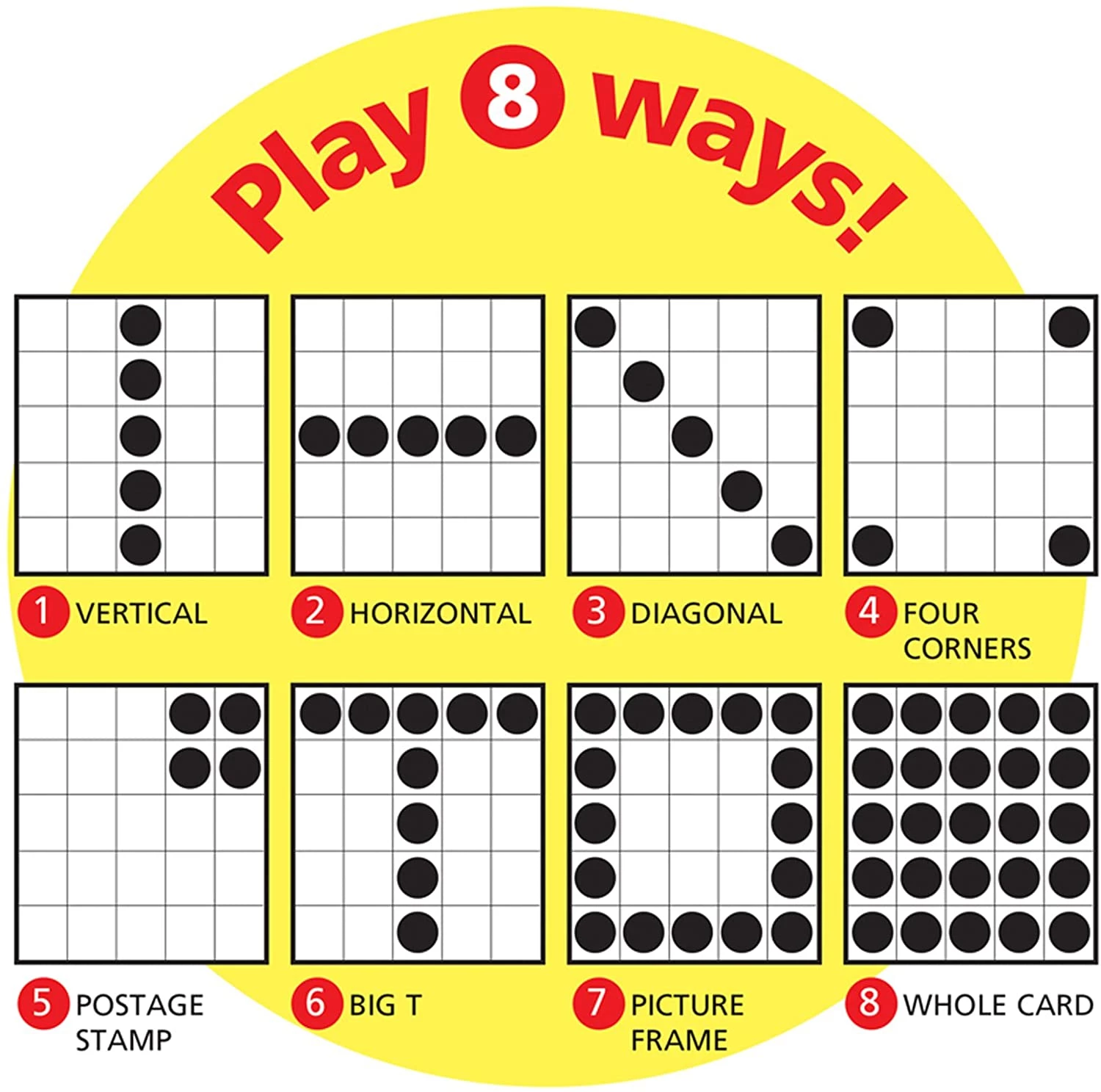 Всего 8 вариантов игры бинго. Одновременно могут играть от 3 до 36 игроков.