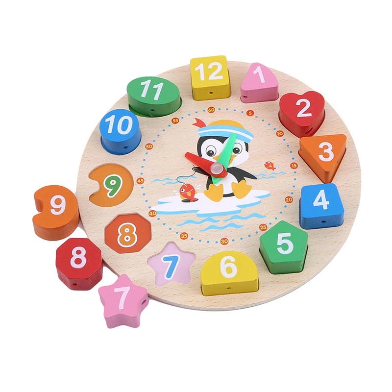 Красочные часы сделаны из цельной древесины, у них гладкие края, они безопасные и нетоксичные. Милые изображения улучшают познавательные способности детей и способность к мышлению.