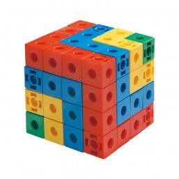 Разноцветные кубики в наборе: красные и желтые по 18 шт., зеленые 12 шт., синие 24 шт. Есть 16 кубиков с 6 отверстиями: по 4 шт. красных, желтых, зеленых, синих. Кубики можно крепить со всех сторон и вращать.