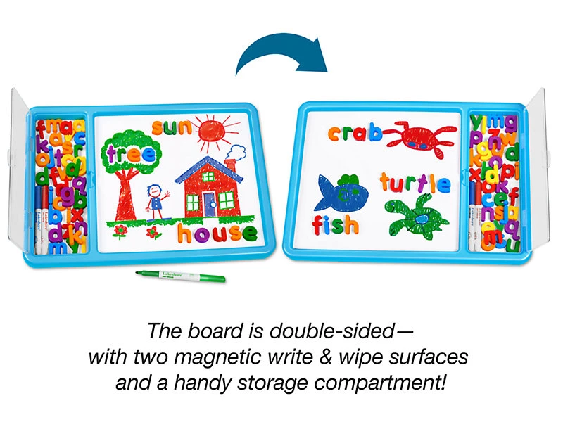 С этой многофункциональной магнитной доской можно проявить творческий подход в изучении новых слов и пополнения словарного запаса! Эта двухсторонняя магнитная доска для записи и вытирания, которая предлагает детям рисовать, писать буквы, слова и изучать алфавит. Кроме того, встроенный отсек для хранения поставляется со всеми необходимыми для детей принадлежностями.