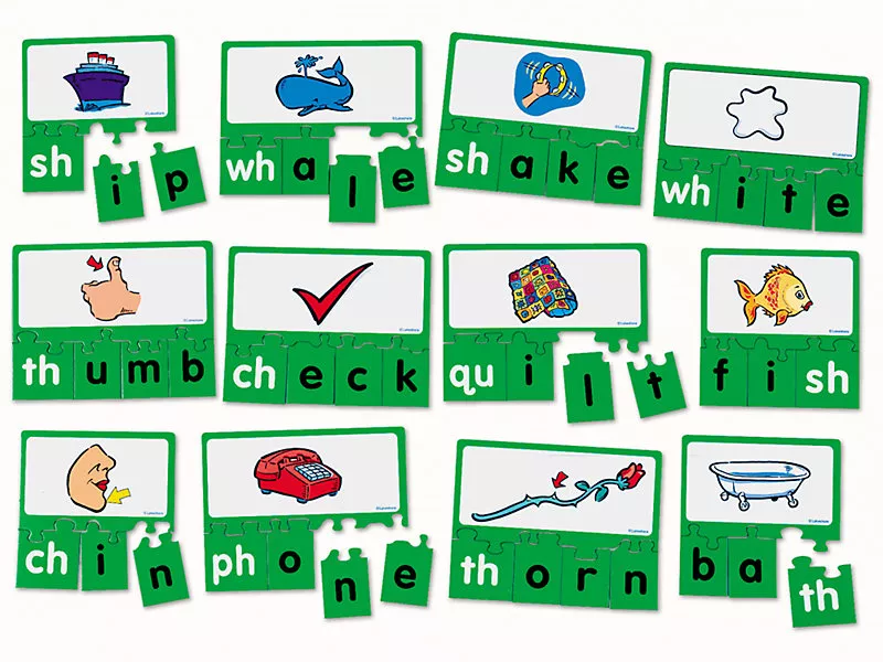 Каждая головоломка имеет подсказку картинку, а также соответствующее слово, разделенное на звук. Каждая часть представляет различный звук для легкого сопоставления, а орграфы выделены для усиления.