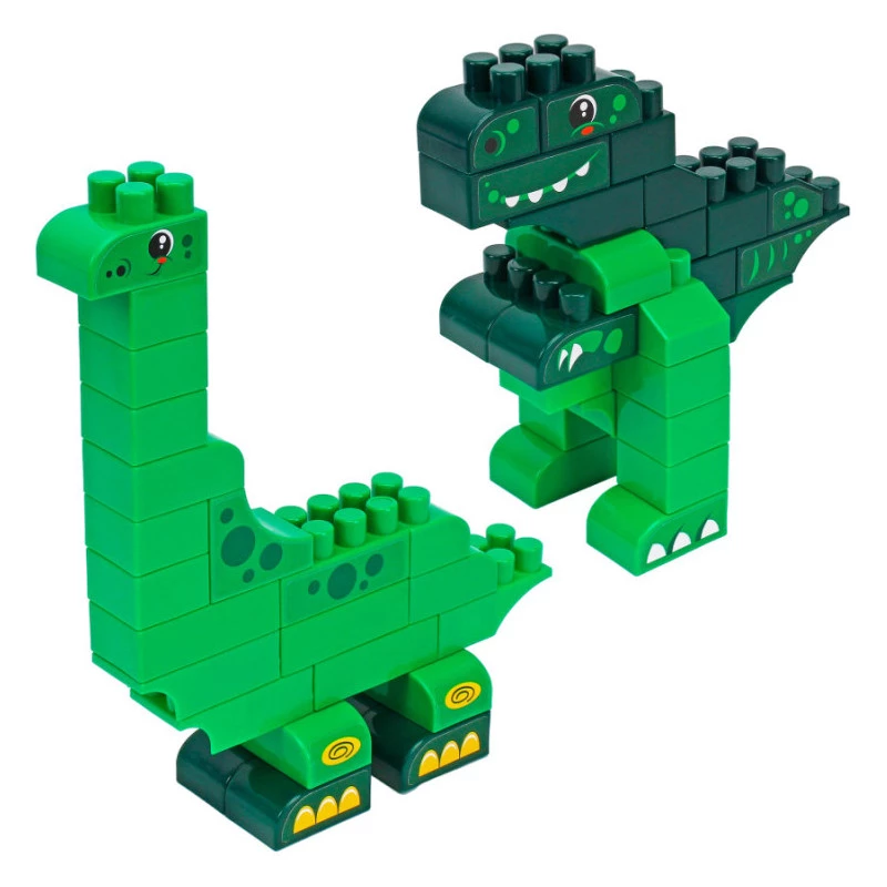Перед вами не просто конструктор — это целый доисторический мир в одном наборе. Комплект включает 190 деталей, при помощи которых ребенок сможет собрать 6 крутых динозавров, величественные деревья, а также автомобиль с отважными исследователями.