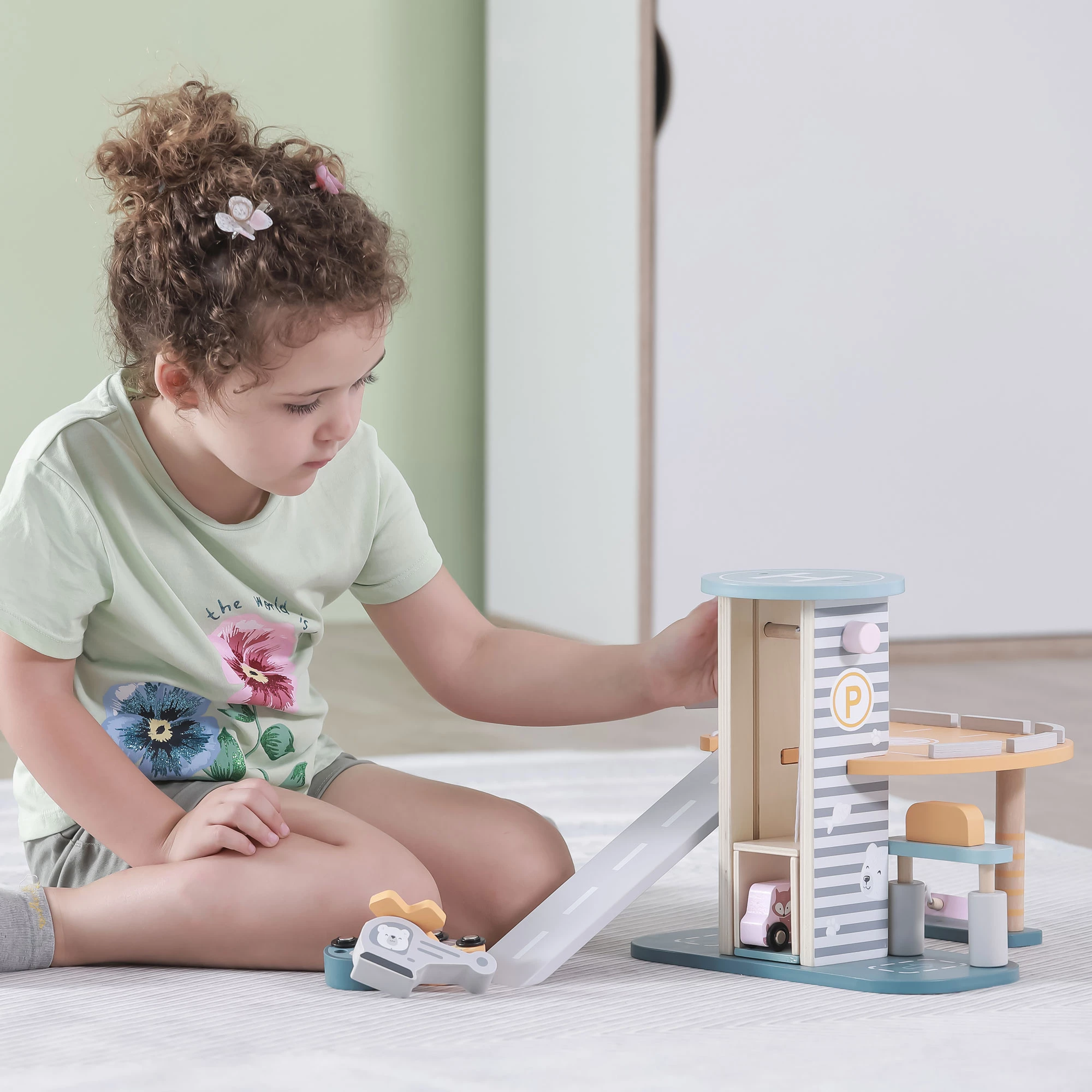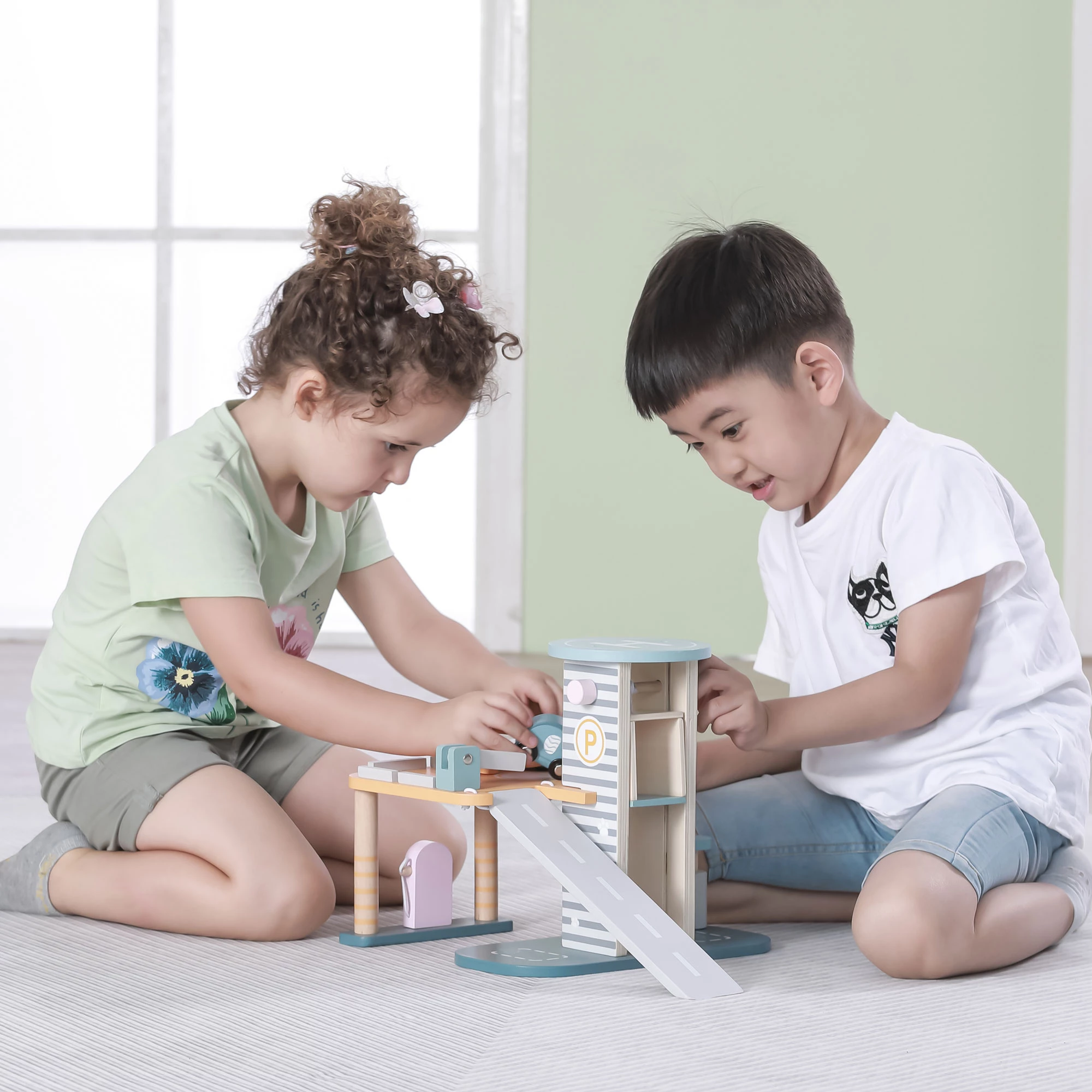 Дайте малышу возможность включить воображения и нырнуть в увлекательную игру с этим прекрасным набором. Отличный деревянный набор окрашен нетоксичными красками. Увлекает ребенка в интересной игре и развивает моторику рук, фантазию, логику и сообразительность. Этот двухэтажный паркинг включает в себя заправку, автомойку, лифт, площадку для вертолета, вертолет и три машинки.