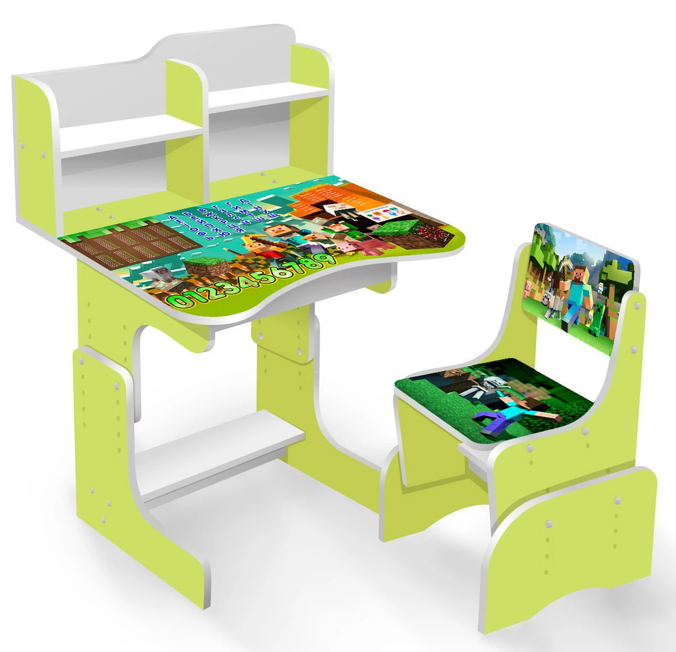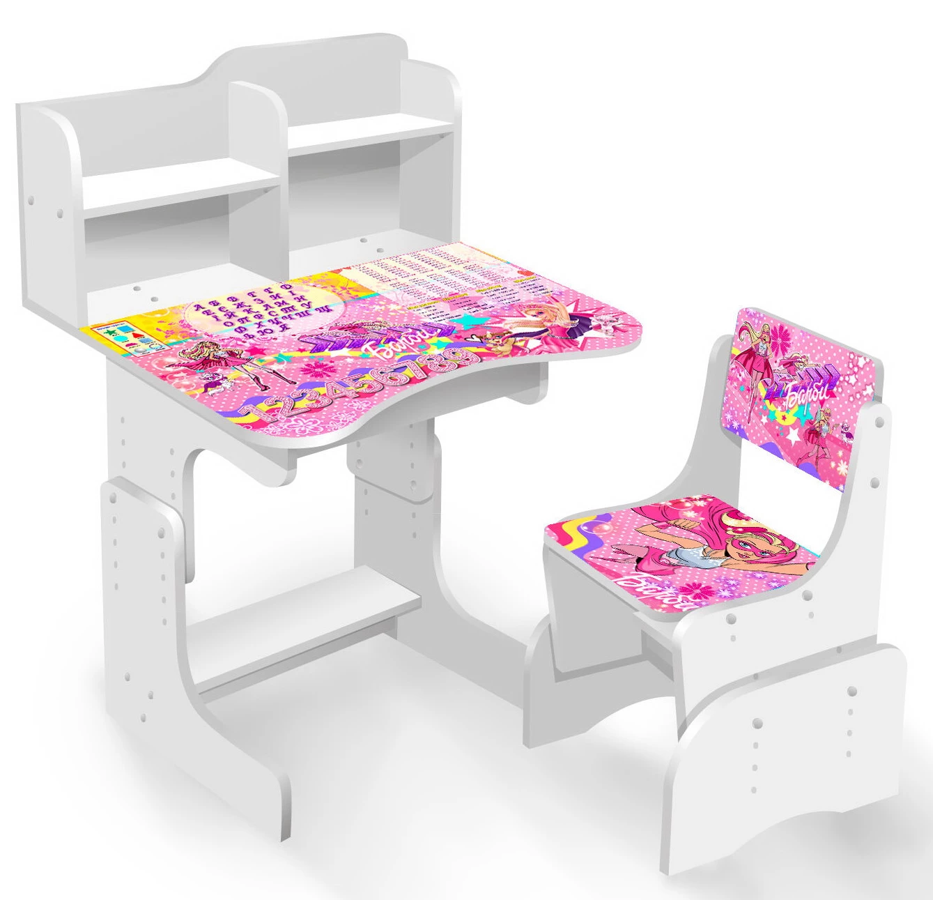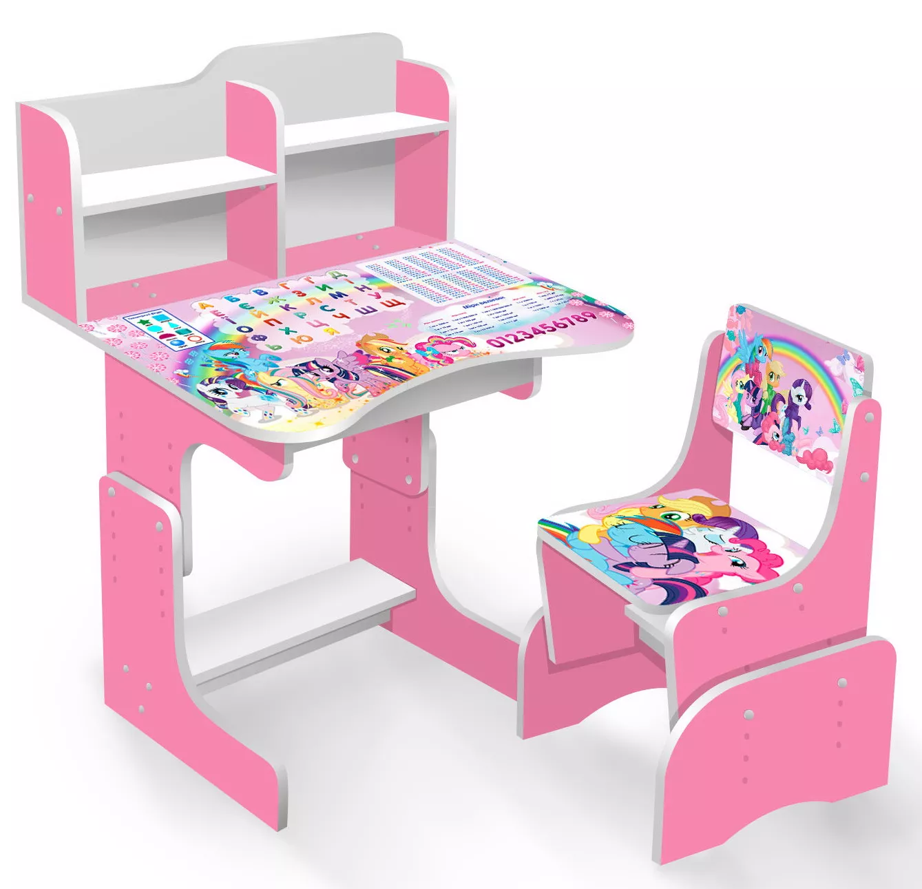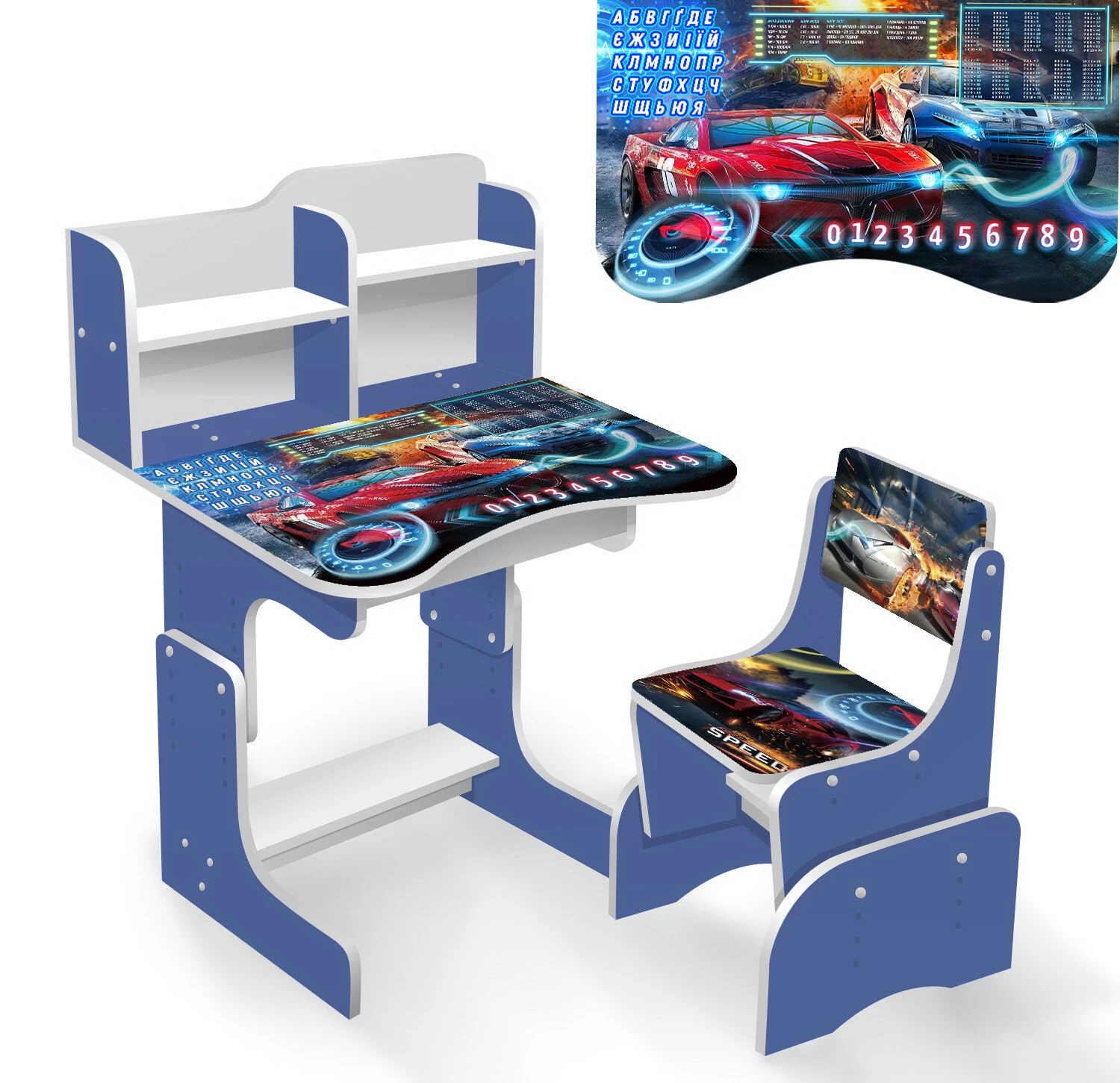 Если и учиться на отлично, то только с такой партой – стильной, яркой и интересной! Взрывной принт на столешнице и стуле совместно с цветом остальных частей создают идеальное пространство для учёбы: ребёнок не захочет отвлекаться от занятий, пока всё не сделает! Кстати, на столешнице расположены некоторые подсказки для юного школьника! А отличным дополнением станет встроенный под столешницей пенал и расположенная над столешницей полка – там ученик сможет разложить все свои школьные принадлежности.