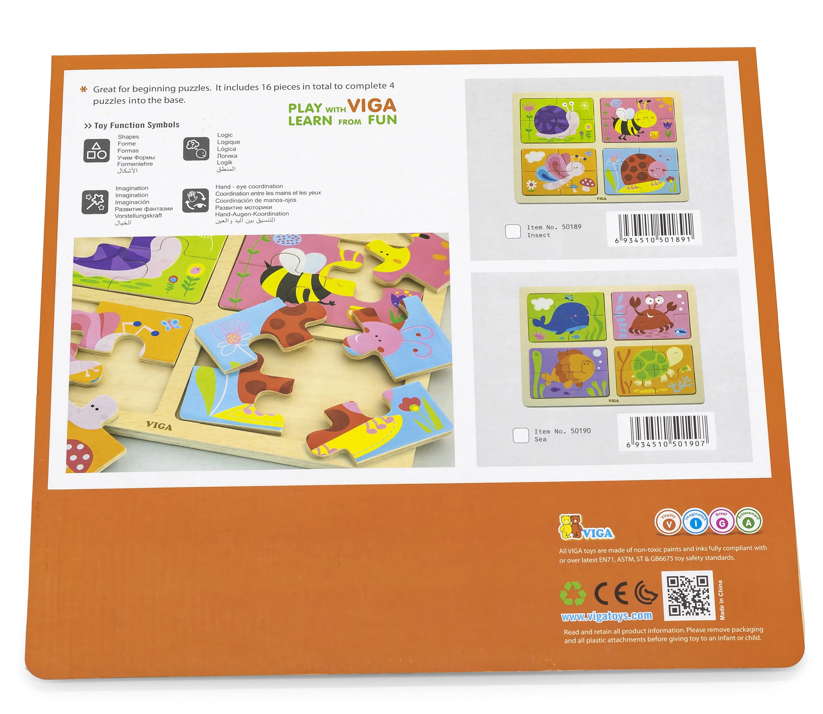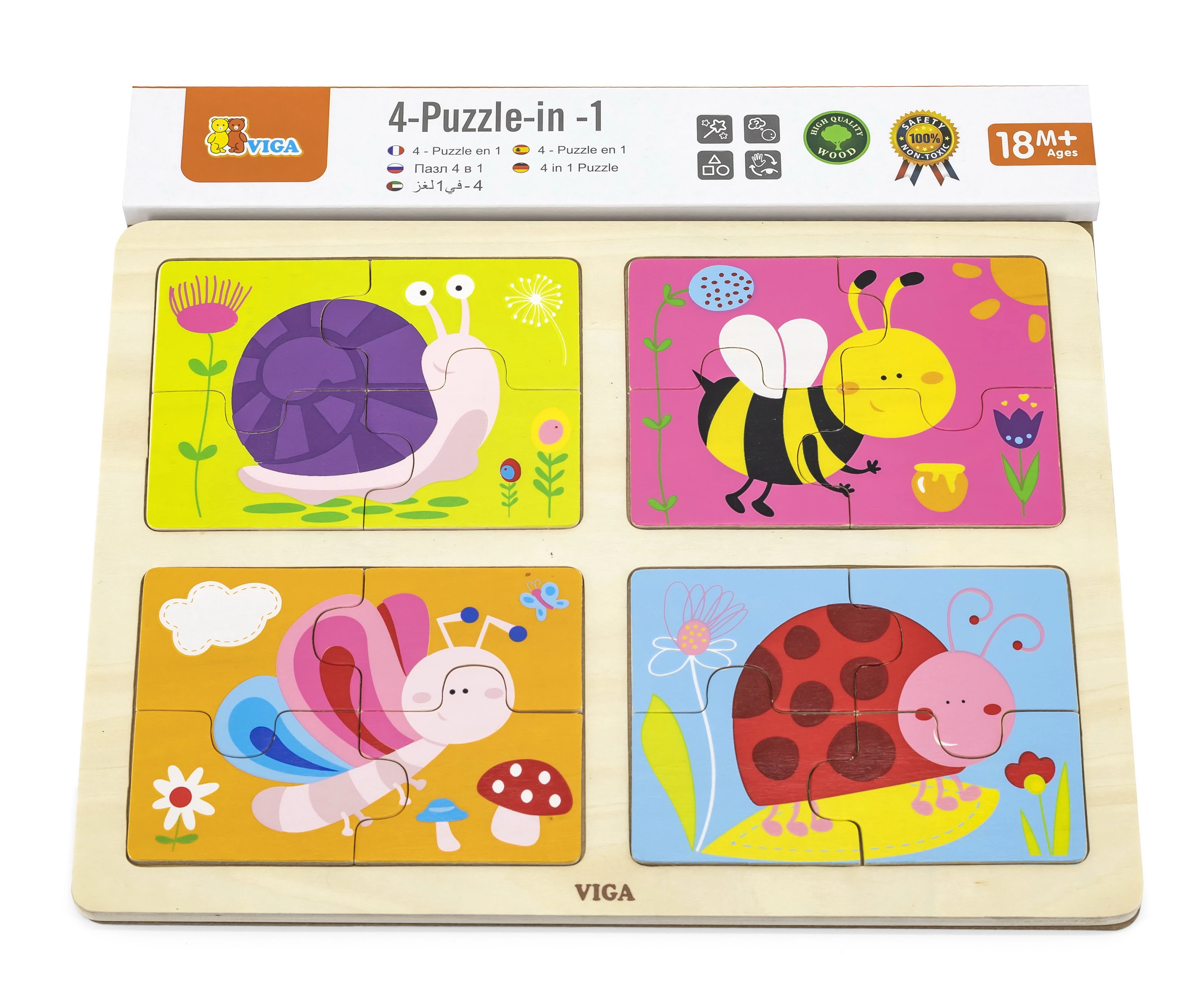 Видео Развивающий пазл Насекомые 4 в 1 от Viga Toys