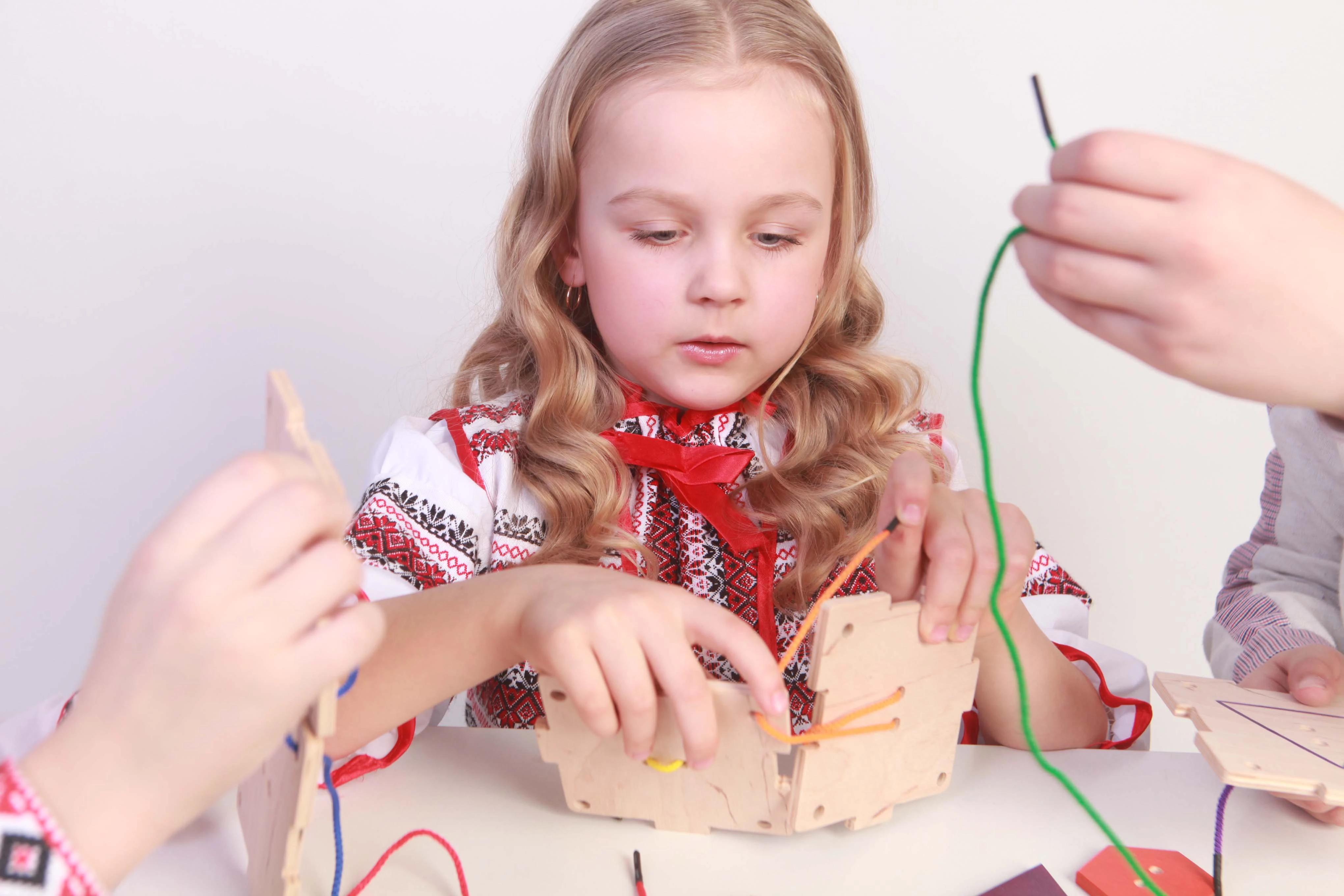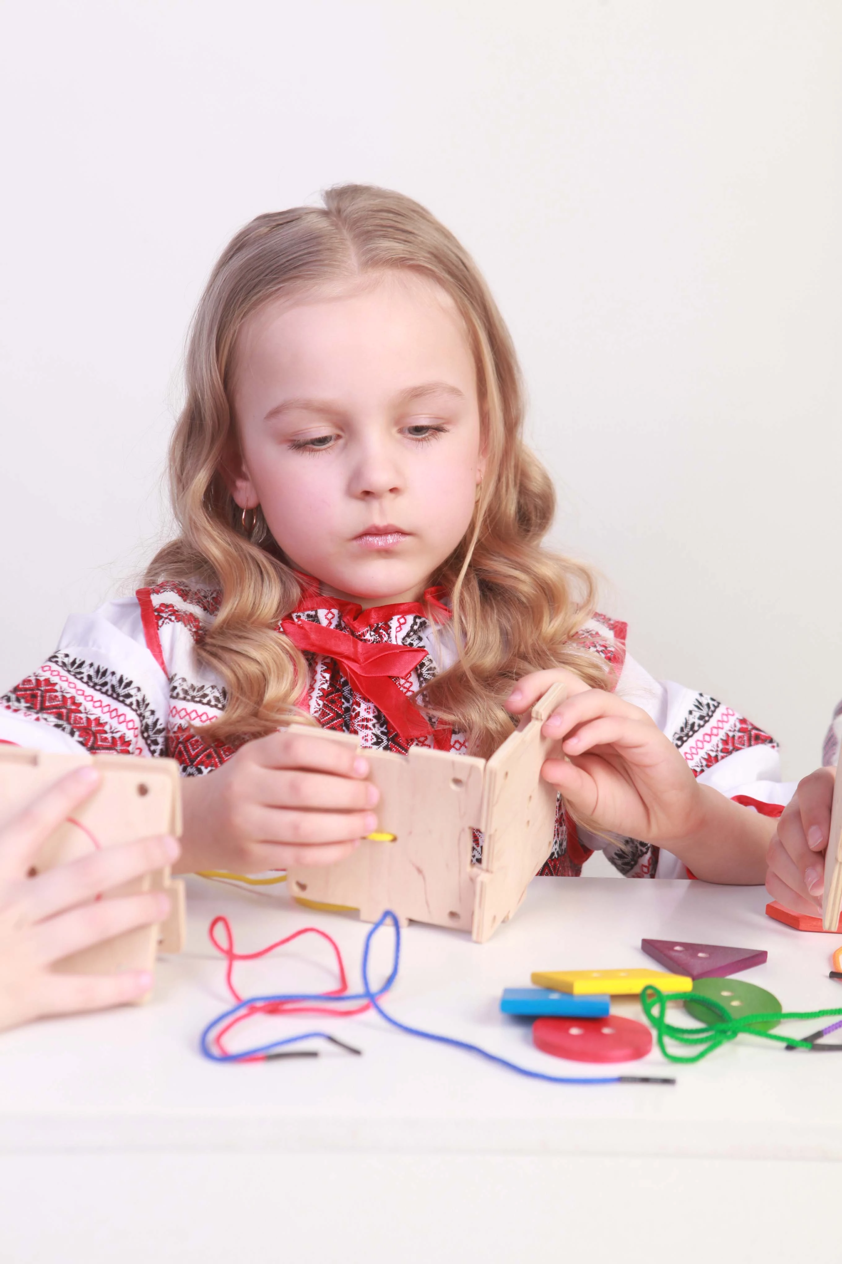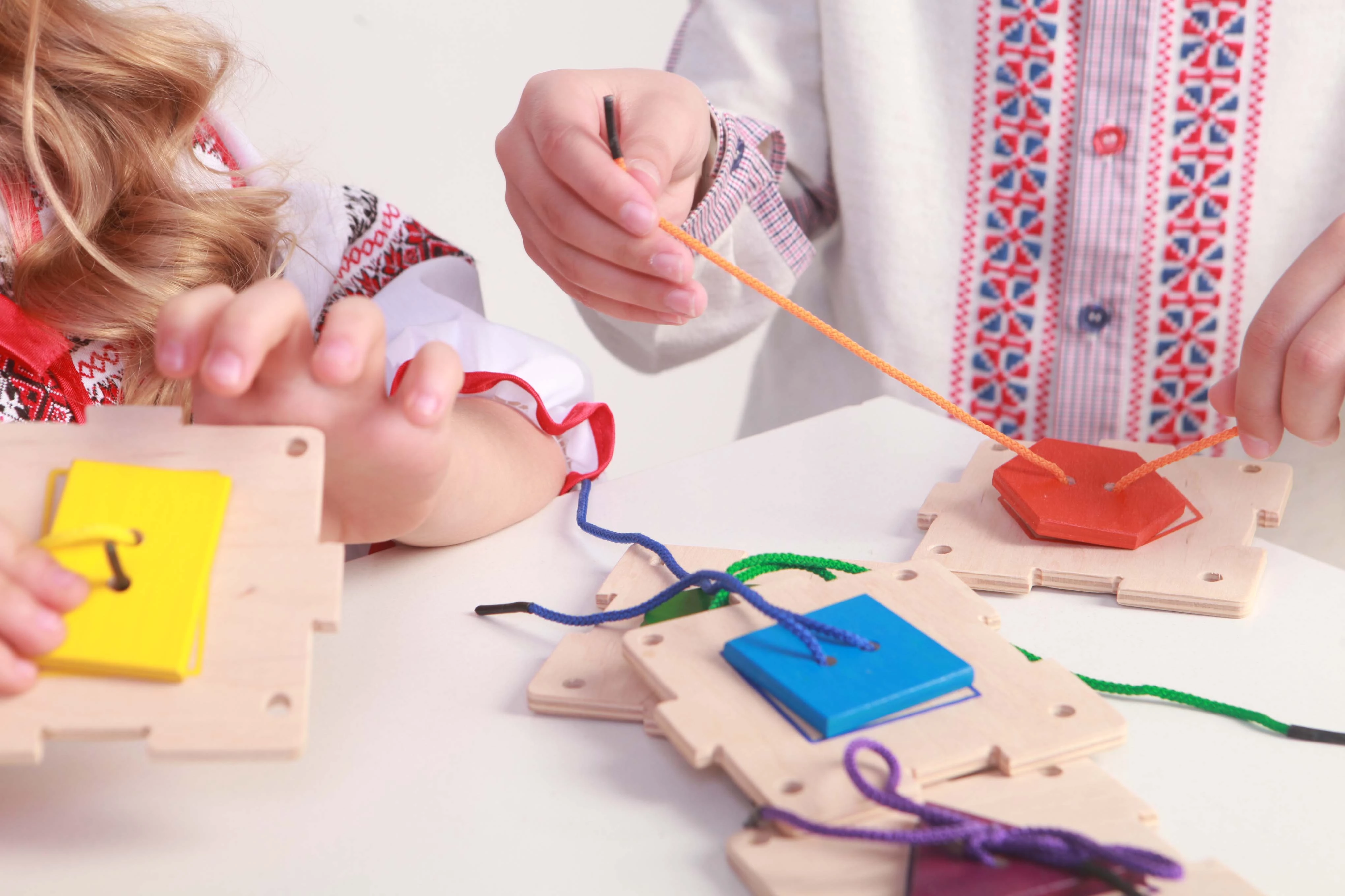 Эта развивающая игрушка, созданная талантливыми профессионалами украинской фирмы Hega, познакомит малышей в возрасте от трех лет с геометрическими формами, базовыми цветами, привьет навык завязывания шнурков и даже пришивания пуговиц. Игровой комплект включает в себя основу и шесть ярких геометрических фигур, окрашенных со всех сторон и соединенных с деревянным основанием посредством разноцветных шнурков.