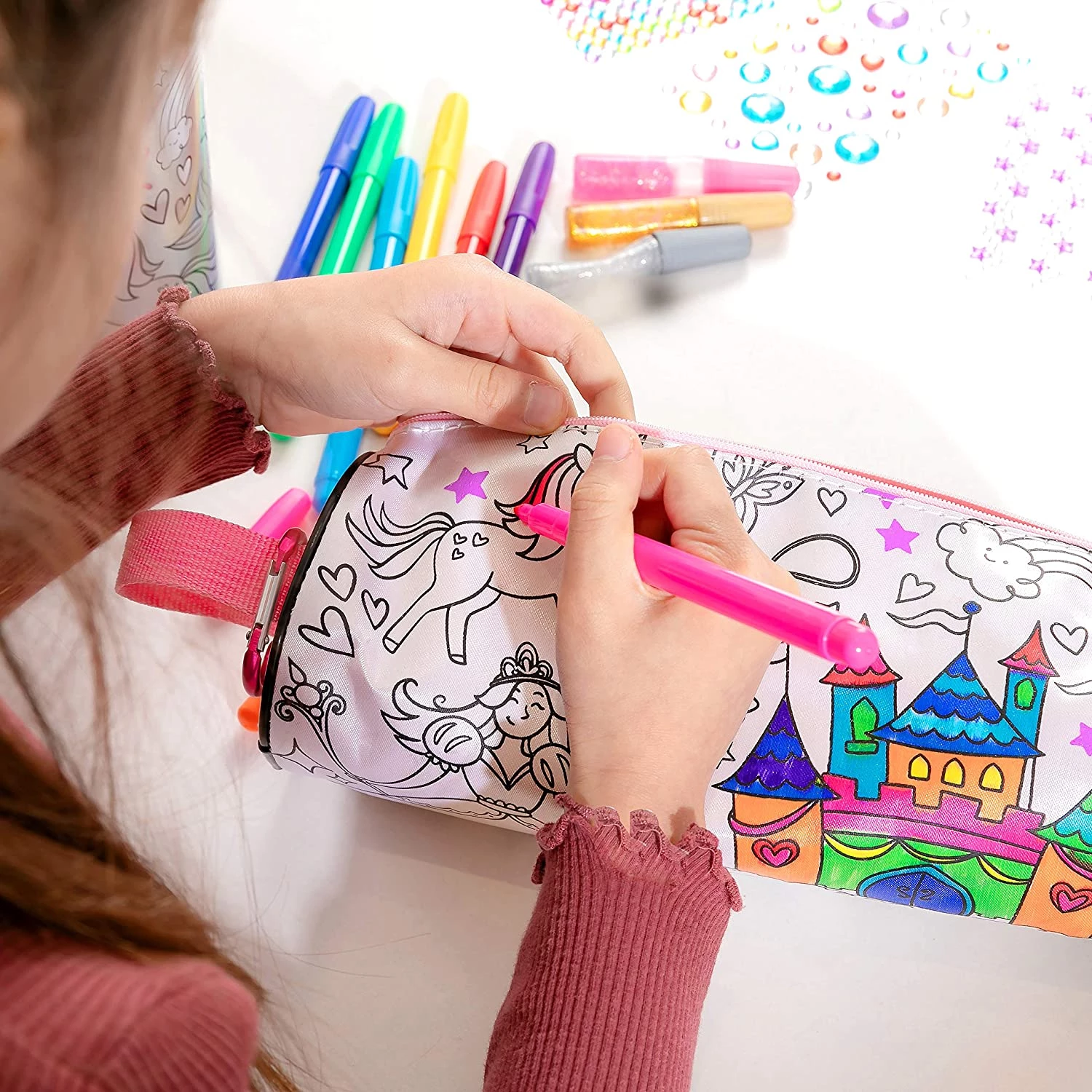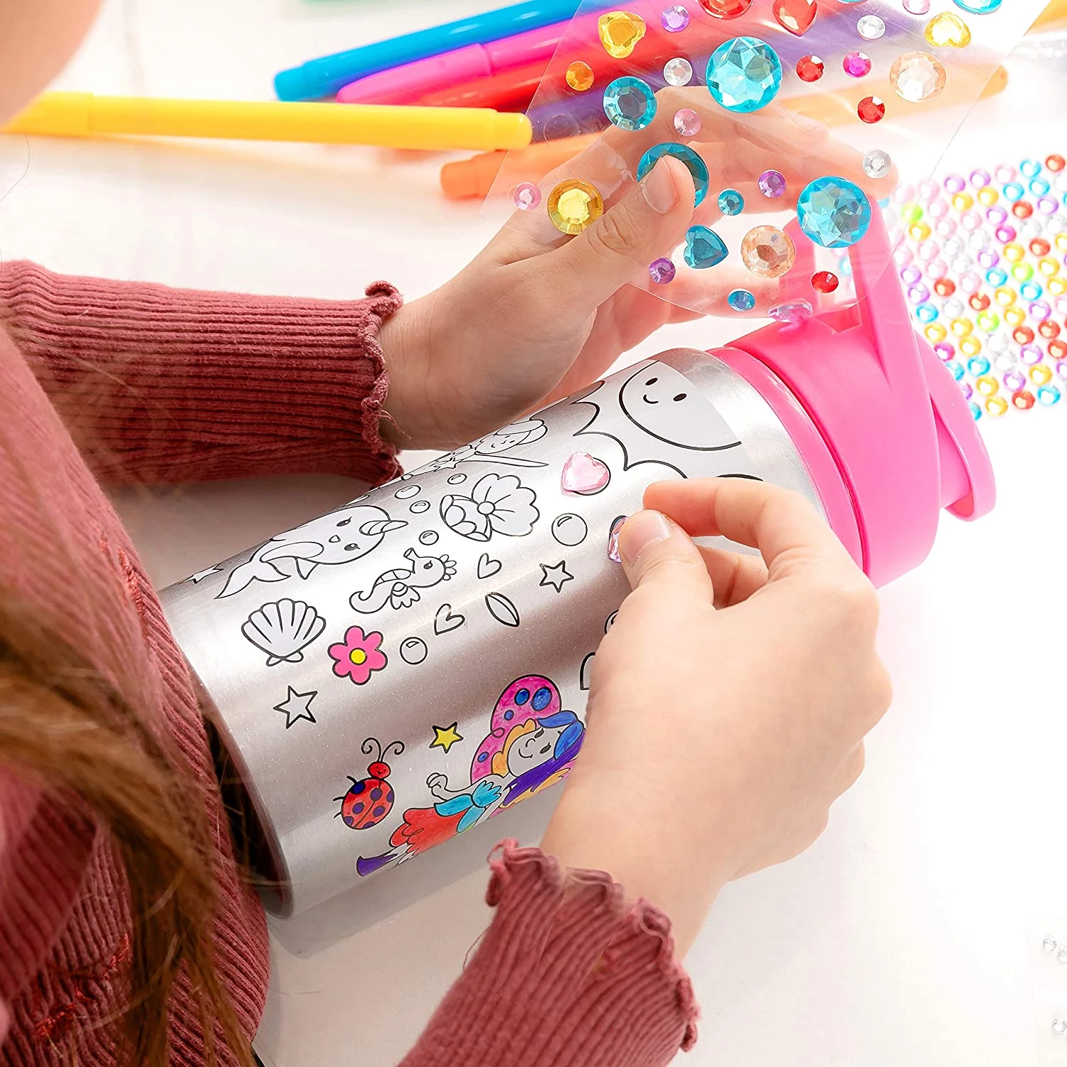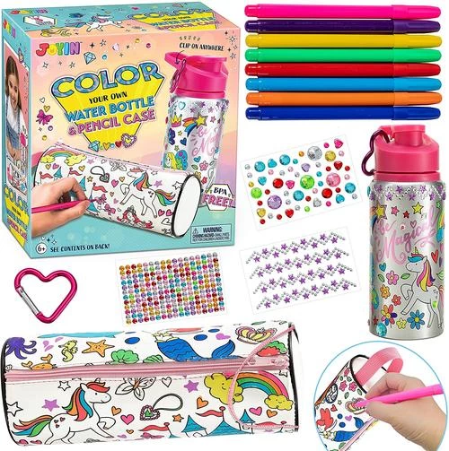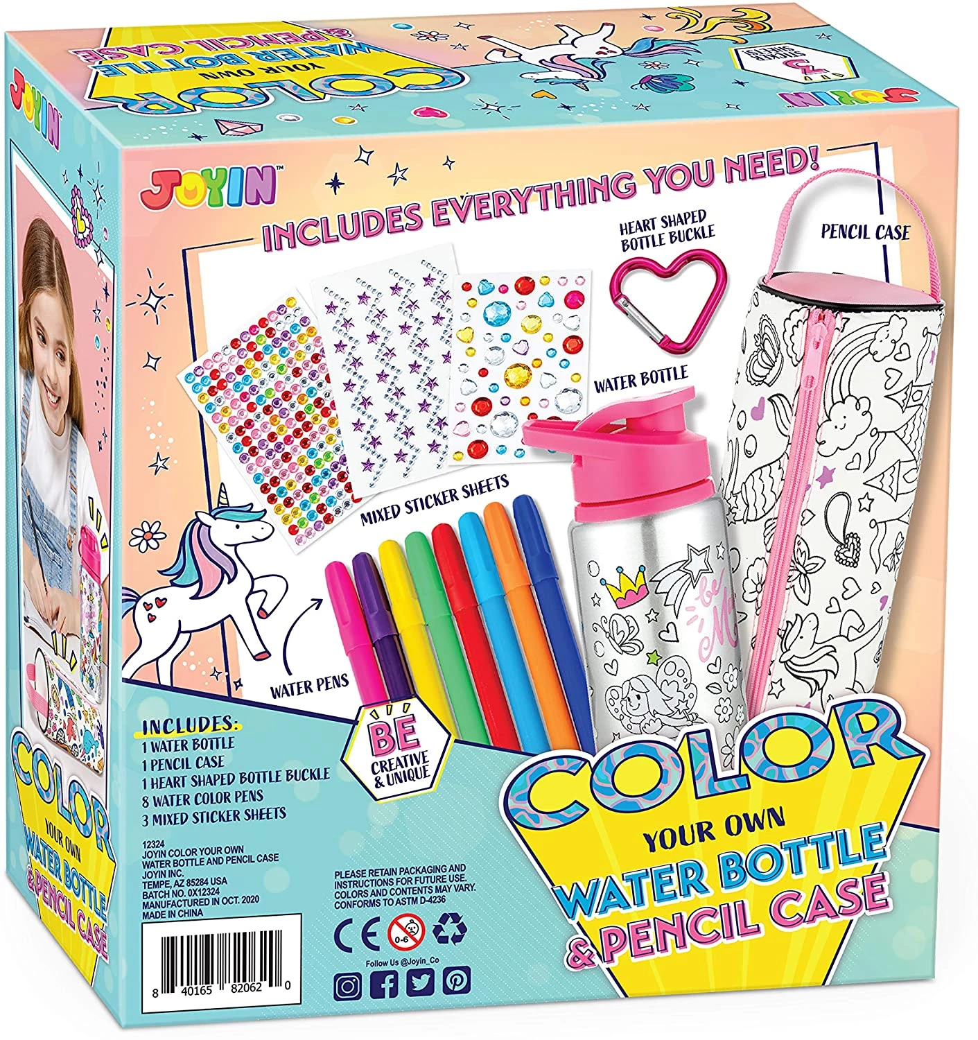 Замечательный творческий набор для юной модницы, она сможет раскрасить его по своему усмотрению и создать неповторимый авторский дизайн. В комплекте прилагается 8 разноцветных акварельных ручек и несколько видов стразов, которыми можно украсить пенал и алюминиевую бутылочку для воды. Такой набор может стать отличным подарком на любой праздник, ведь он развивает мелкую моторику, воображение и чувство стиля. С помощью специально пряжки в форме сердечка, пенал можно будет куда-то прикрепить. Дайте волю своему воображению и создайте уникальный шедевр!