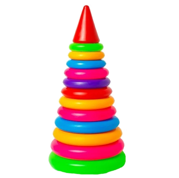 представленная пирамидка состоит из верхушки и двенадцати круглых разноцветных колец. Яркие цвета игрушки обязательно привлекут внимание малыша, и ребенок будет с интересом нанизывать колечки на стойкую основу со стержнем. Собирать и разбирать пирамидку не только интересно, но и крайне полезно. Игрушка способствует развитию мелкой моторики, логики, интеллекта. Кроме того, данная пирамидка способствует восприятию малышом формы, цветов и размеров, учит видеть взаимосвязи между целым и частями.