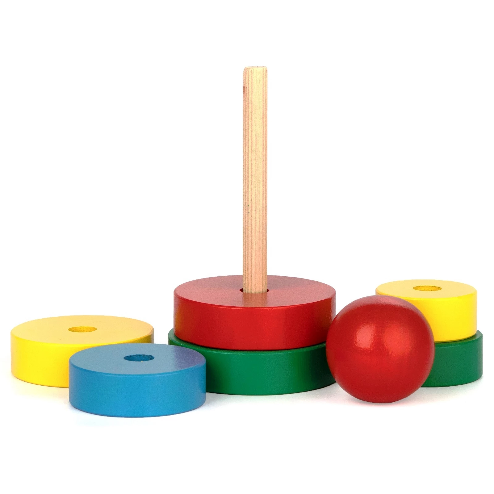Состоящая из семи элементов классическая деревянная пирамидка — отличный подарок для самых маленьких исследователей. Данная игрушка развивает важные умения и навыки, такие, как мелкая моторика, координация движений, глазомер и другие. Элементы пирамидки изготовлены из качественной древесины и покрыты безопасными красками на водной основе.
