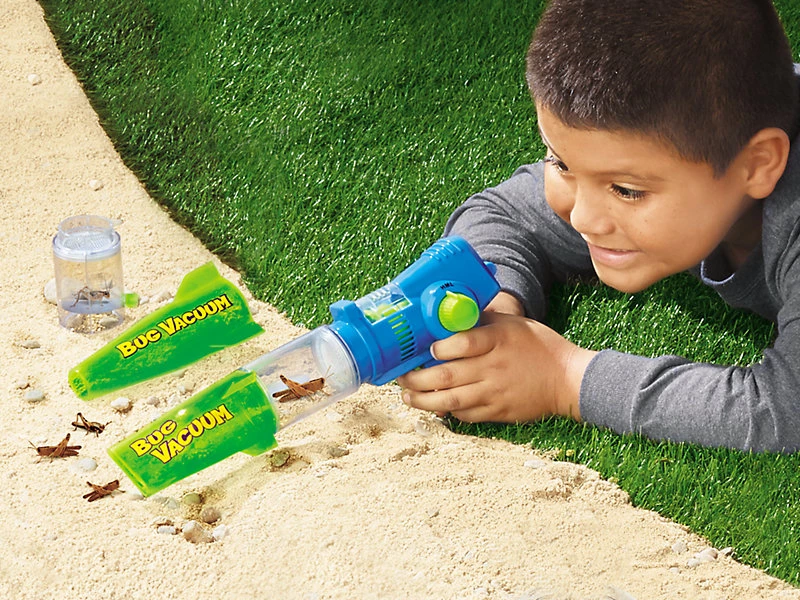 С этим пистолетом ловить насекомых очень весело и быстро. Дети ставят пистолетик над насекомым, нажимают на курок и он мягко засасывает жука (или другого насекомого) во встроенную капсулу!