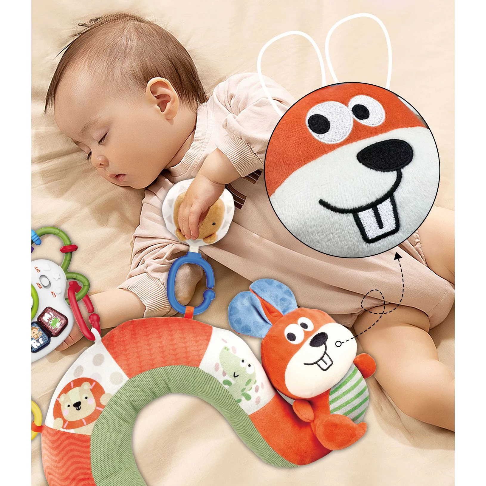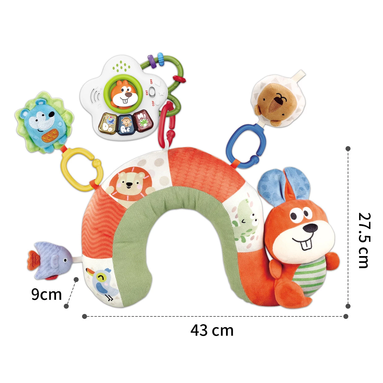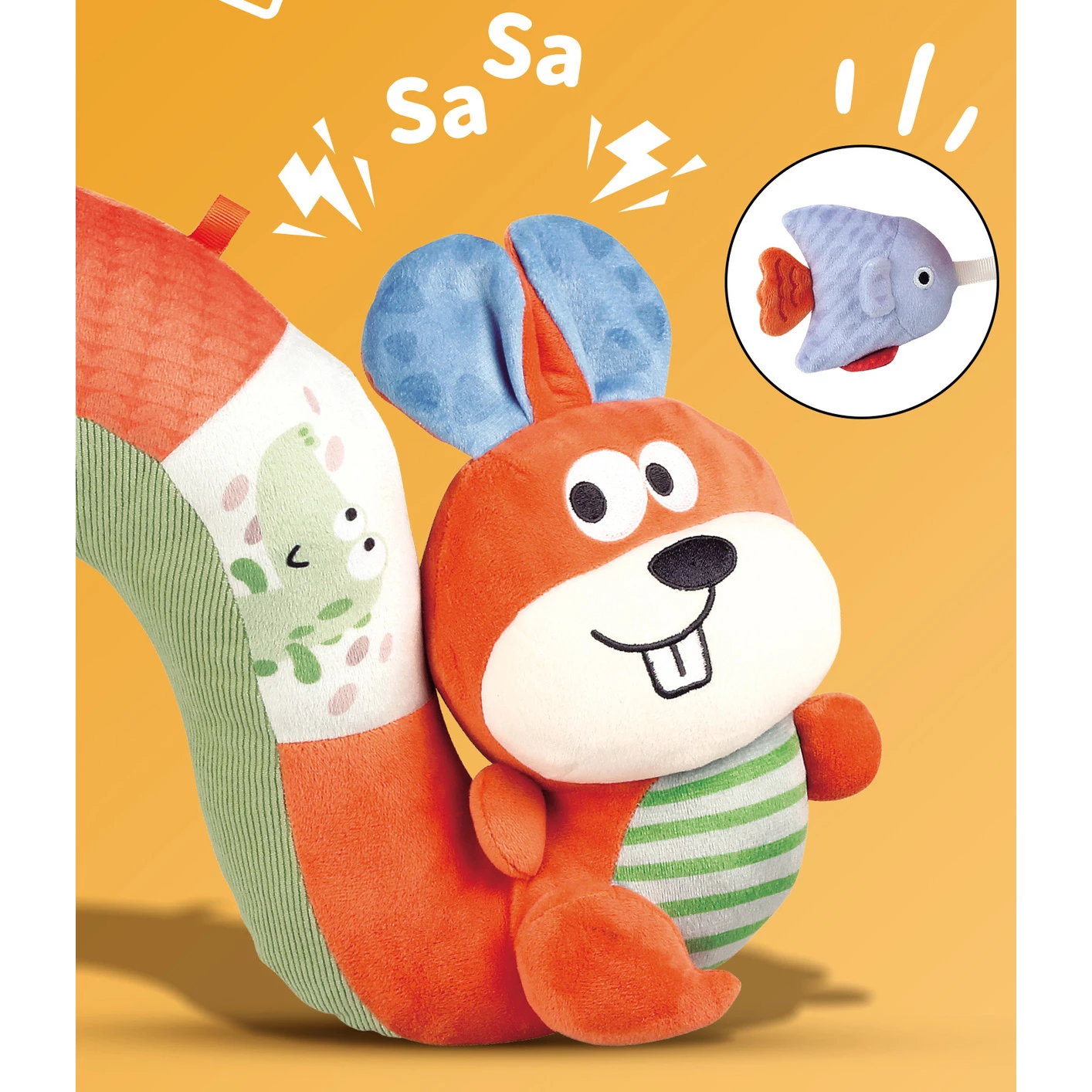 Эта яркая многофункциональная подушка для малышей создана для того, чтобы развивать сенсорные навыки, моторику и детское внимание. Подушка выполнена в форме белочки и снабжена разнообразными интерактивными деталями. К подушке прикреплены погремушка, пищалка, а также музыкальный модуль. Изделие выполнено из гипоаллергенных материалов. Эта подушка станет любимым местом для развлечений вашего малыша.