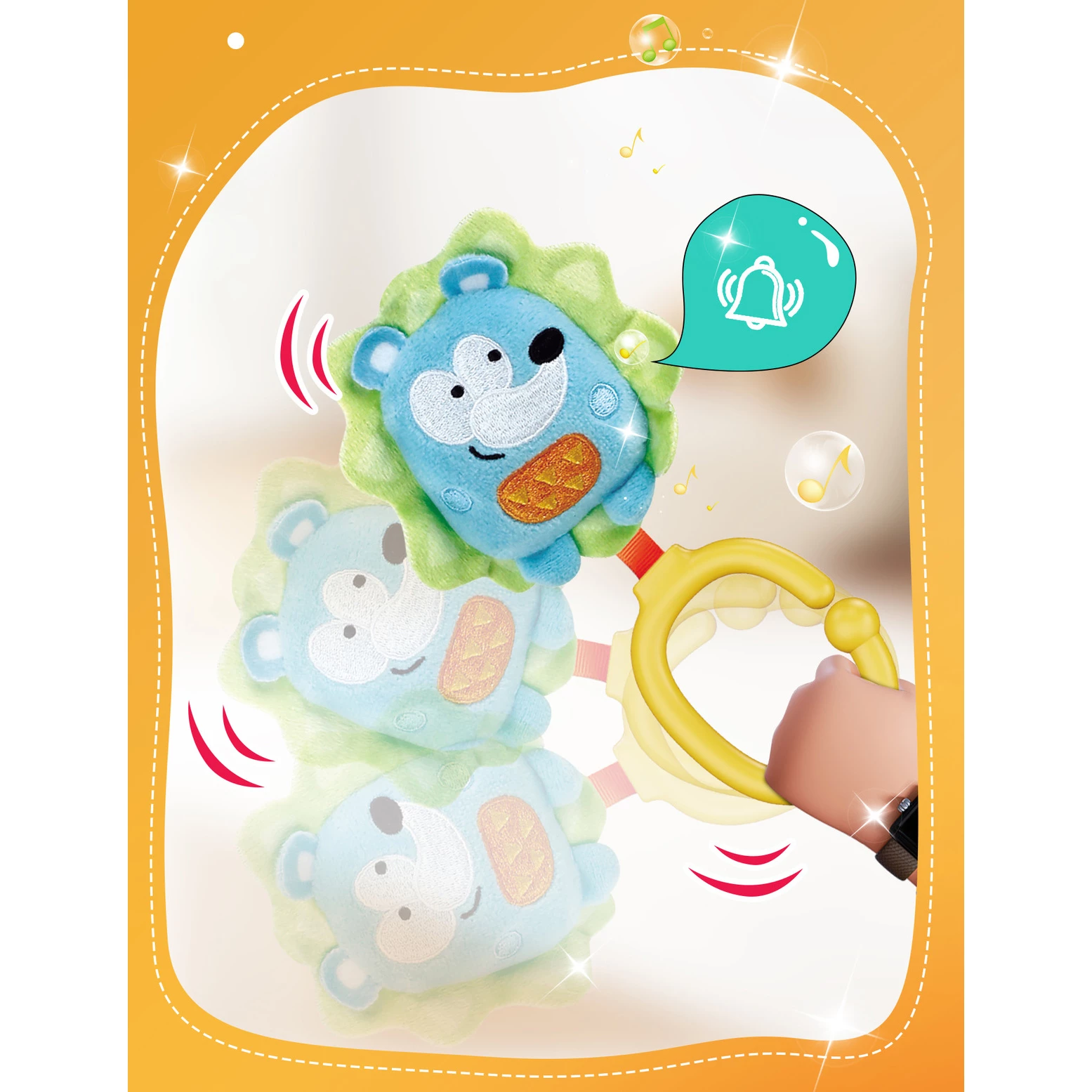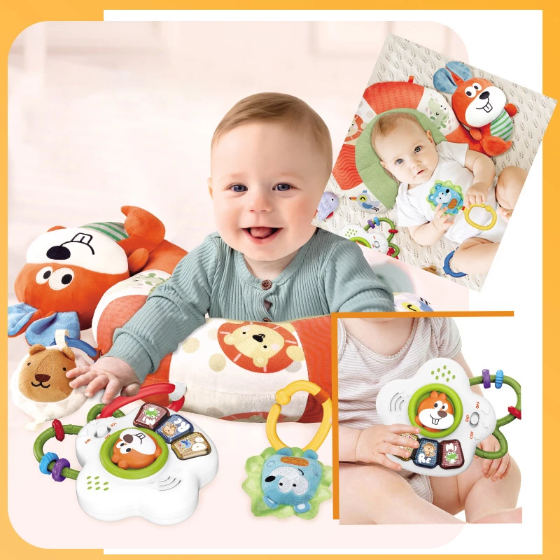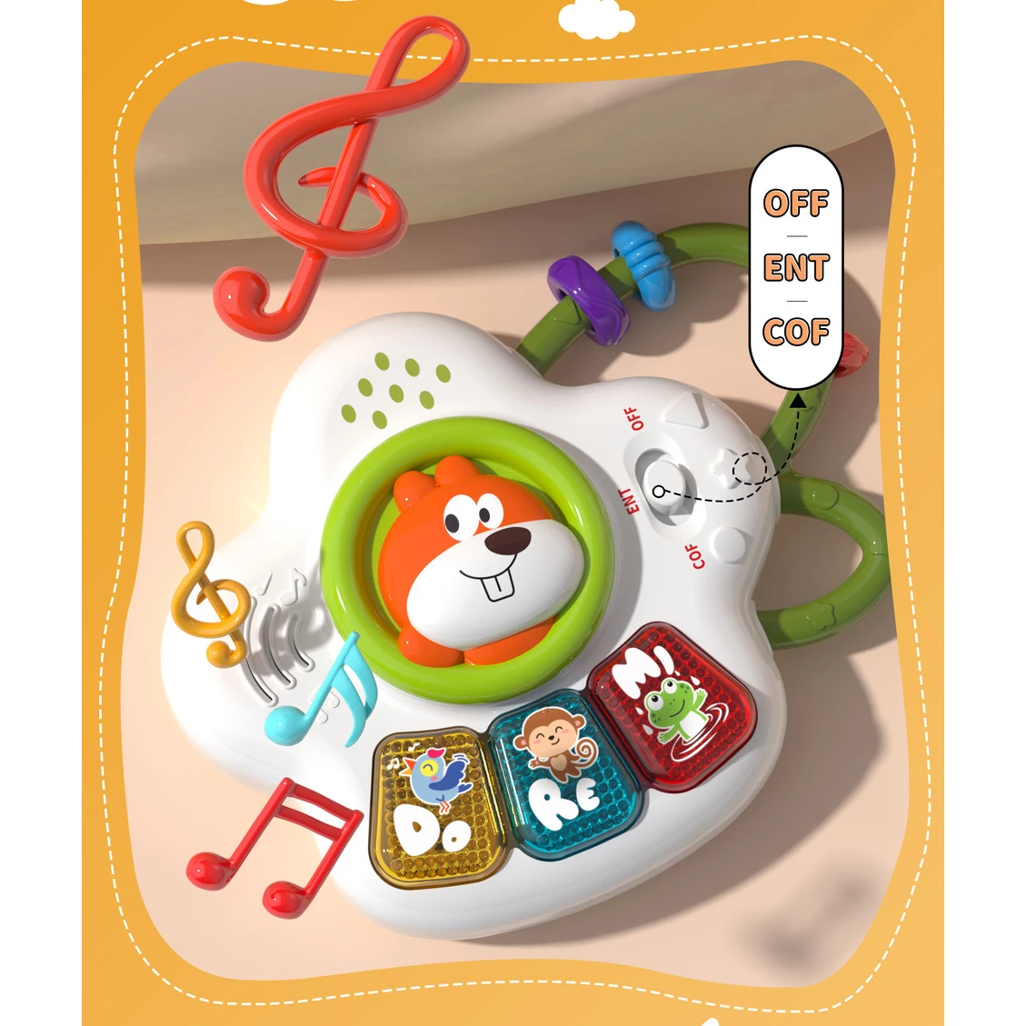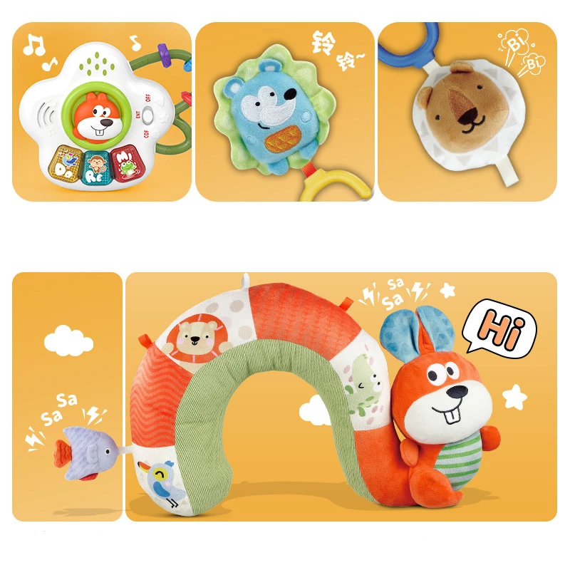 Музыкальный модуль имеет 2 режима работы и оснащен трещоткой. Он воспроизводит мелодии, а также звуки нот и животных. Имеется подсветка. Подвески оснащены пищалкой, погремушкой, а также шелестящими элементами. Ушки белочки издают шелест.
