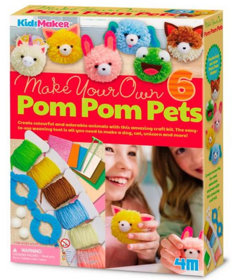 Набор для творчества “Помпоны” - самый милый подарок для детей от пяти лет! С его помощью можно легко создать шесть очаровательных помпонов-зверушек (собаку, кошку, единорога, зайца, лягушку, лисицу), в комплекте есть все необходимые материалы. Готовые изделия можно использовать как брелоки, можно закрепить на шапку или рюкзак. Набор развивает мелкую моторику и аккуратность, ведь в конце придется иметь дело с ножницами для создания формы шара.