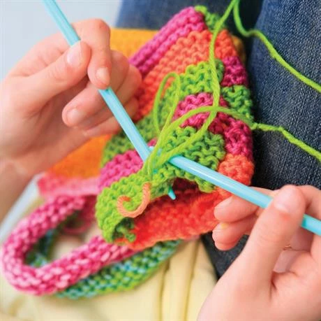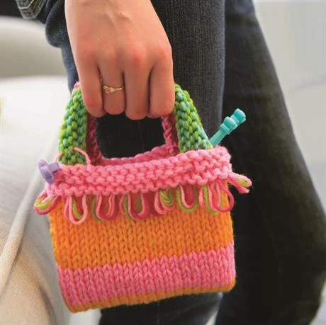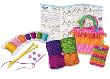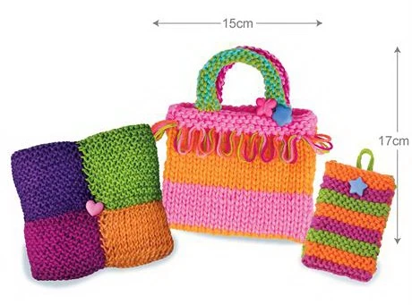 Это прекрасный набор для девочки от 8 лет, она сможет самостоятельно связать себе яркие аксессуары: мини-сумочку, чехол для телефона либо декоративную подушечку. Вязание развивает усидчивость, внимательность, мелкую моторику и аккуратность. Комплект абсолютно безопасный, спицы не острые, но ими удобно набирать петли. Дополнительно понадобятся ножницы.