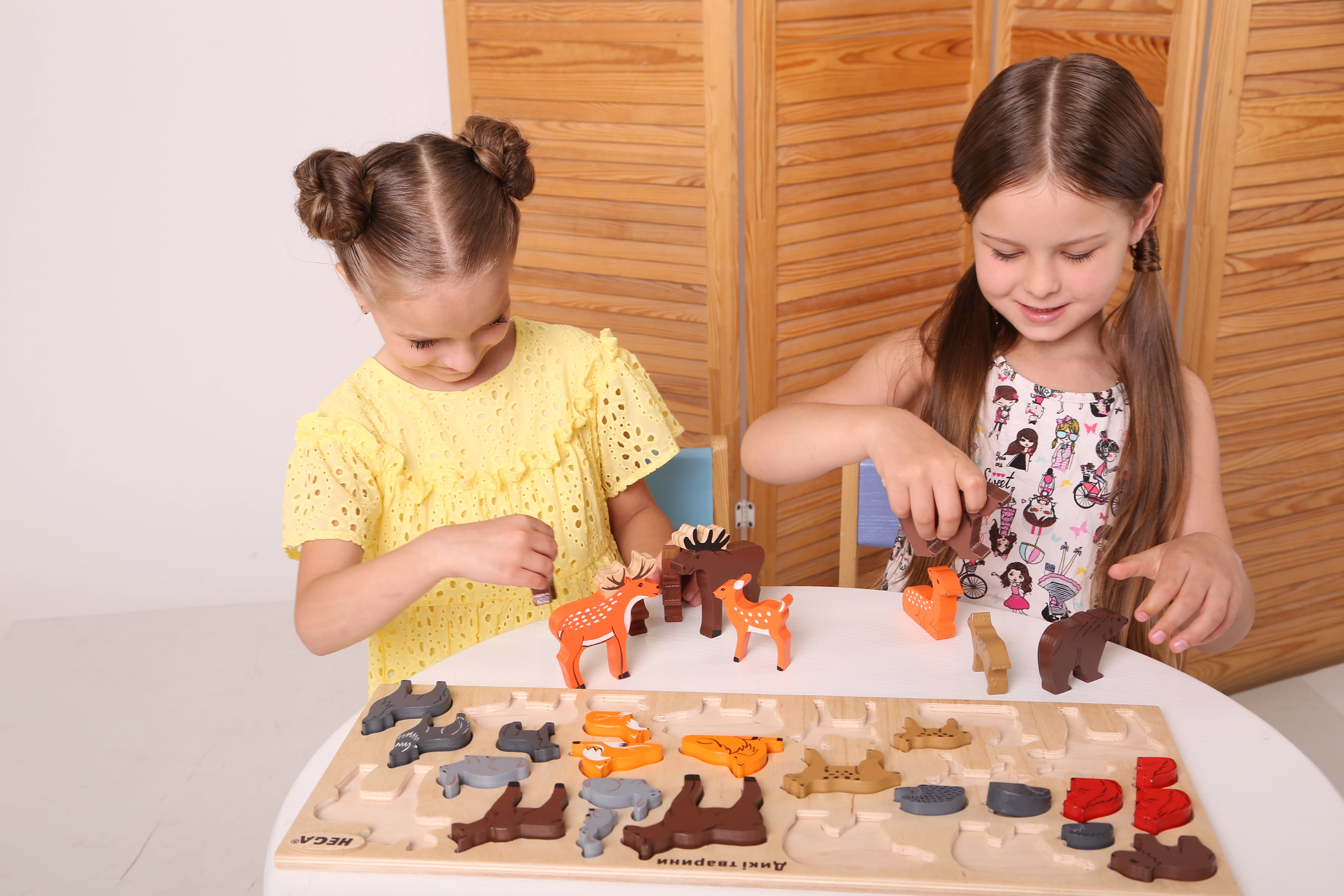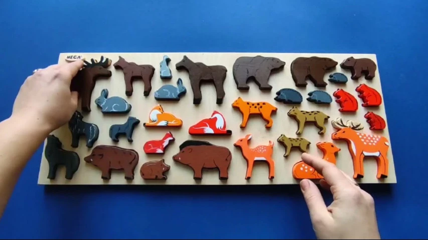 Фигурки животных пропорционально соизмеримы друг с другом и совместимы с другими рамками-сортерами украинского бренда Hega.
