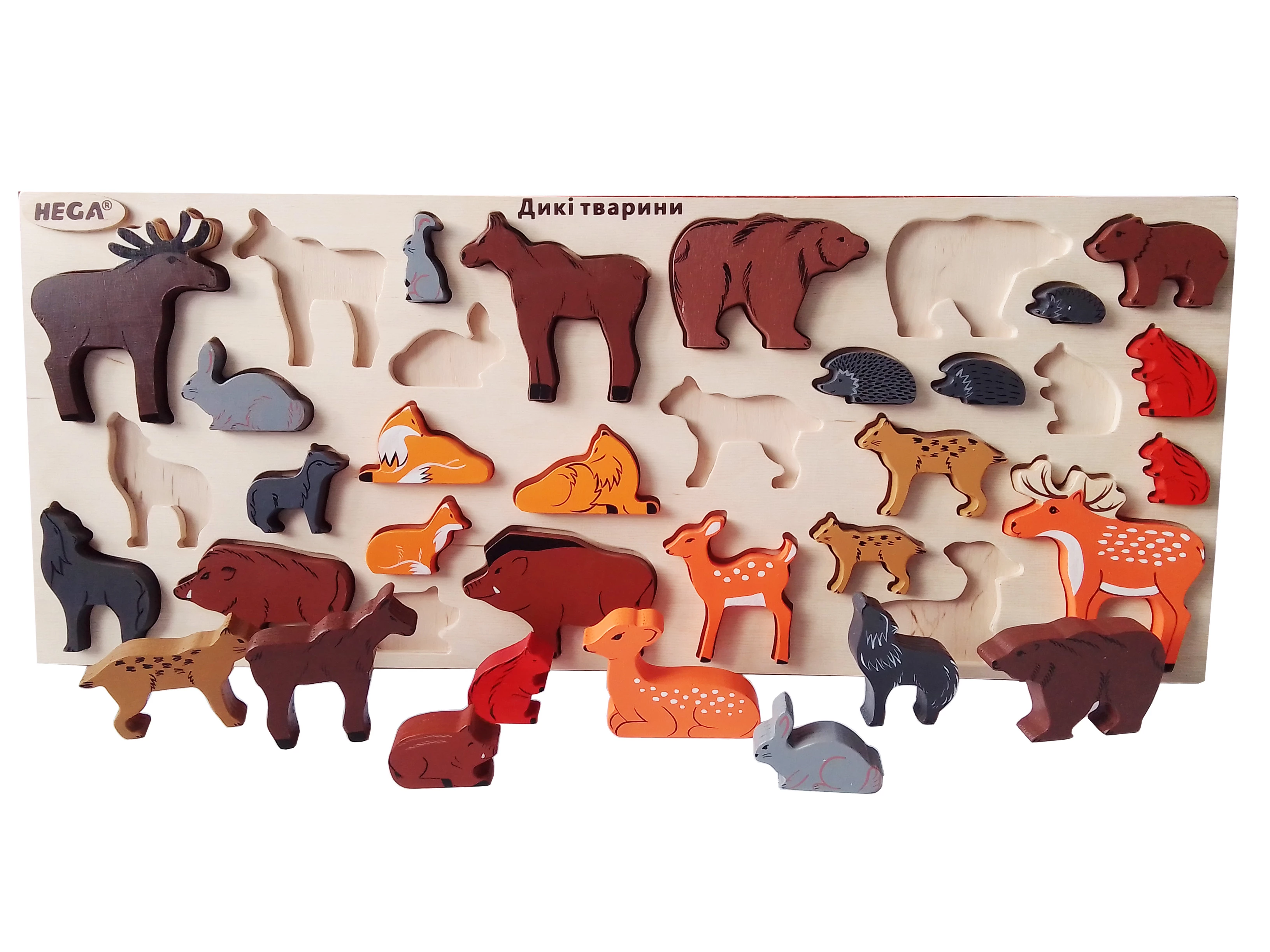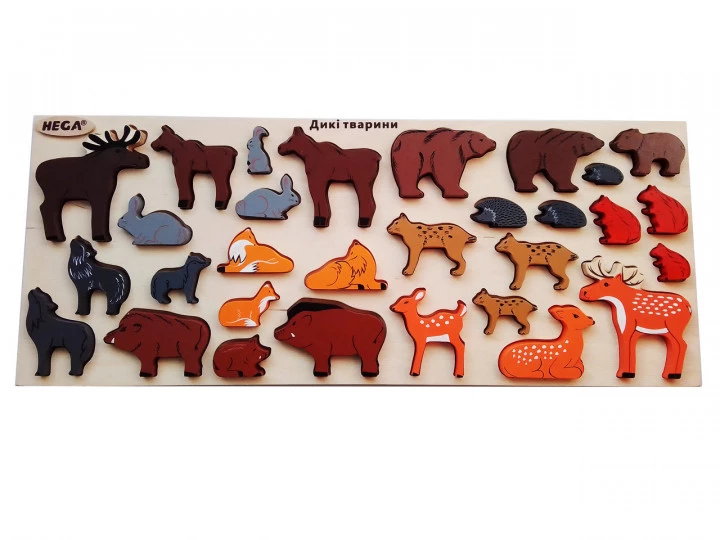 Представленная рамка-вкладыш полностью изменит ваше представление об играх подобного рода. Главная особенность предлагаемой игрушки — большие, объемные и реалистичные фигурки животных, раскрашенные со всех сторон. Итак, перед вами 10 семей диких животных, проживающих на территории Украины. Каждое семейство представлено папой, мамой, а также детенышем.