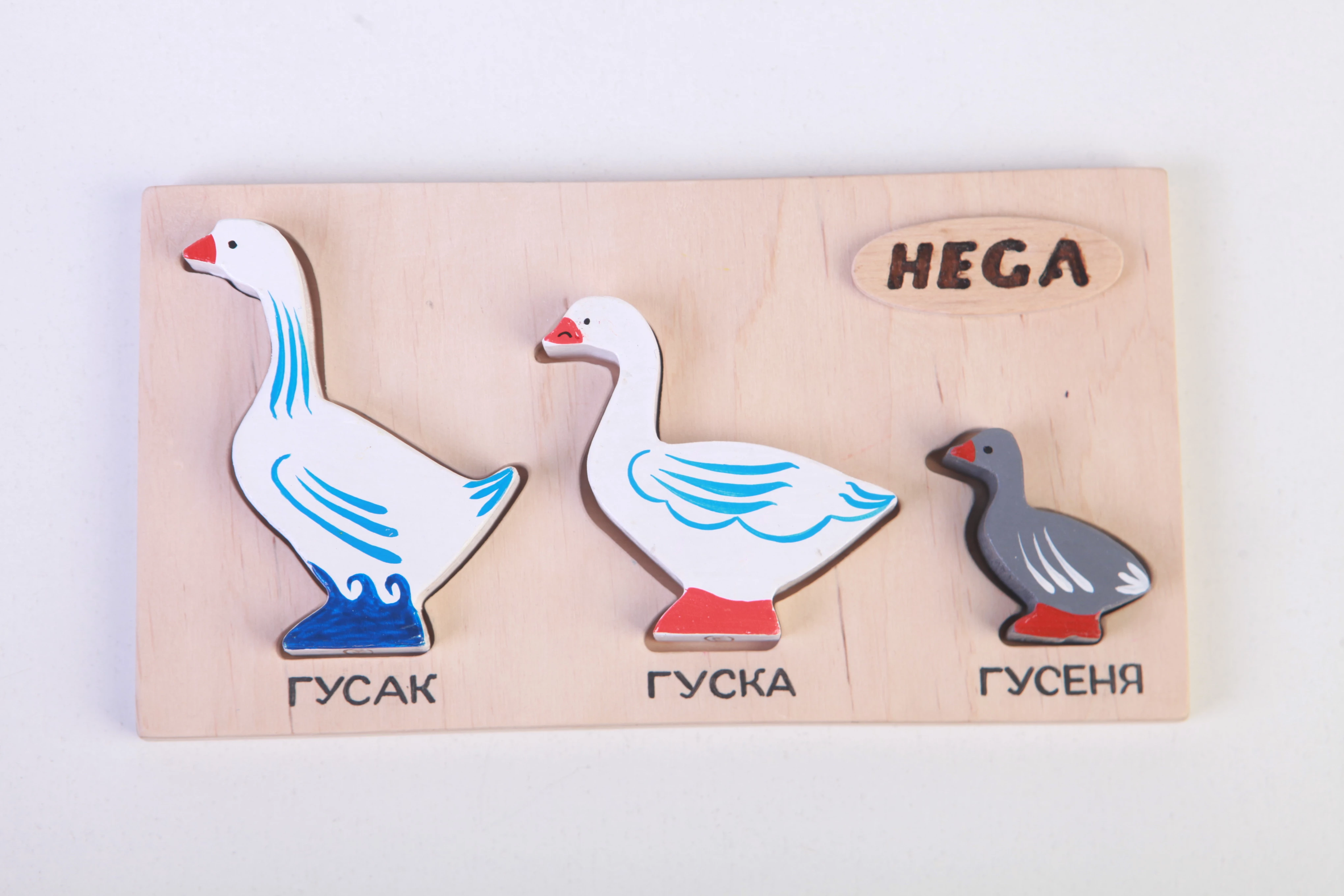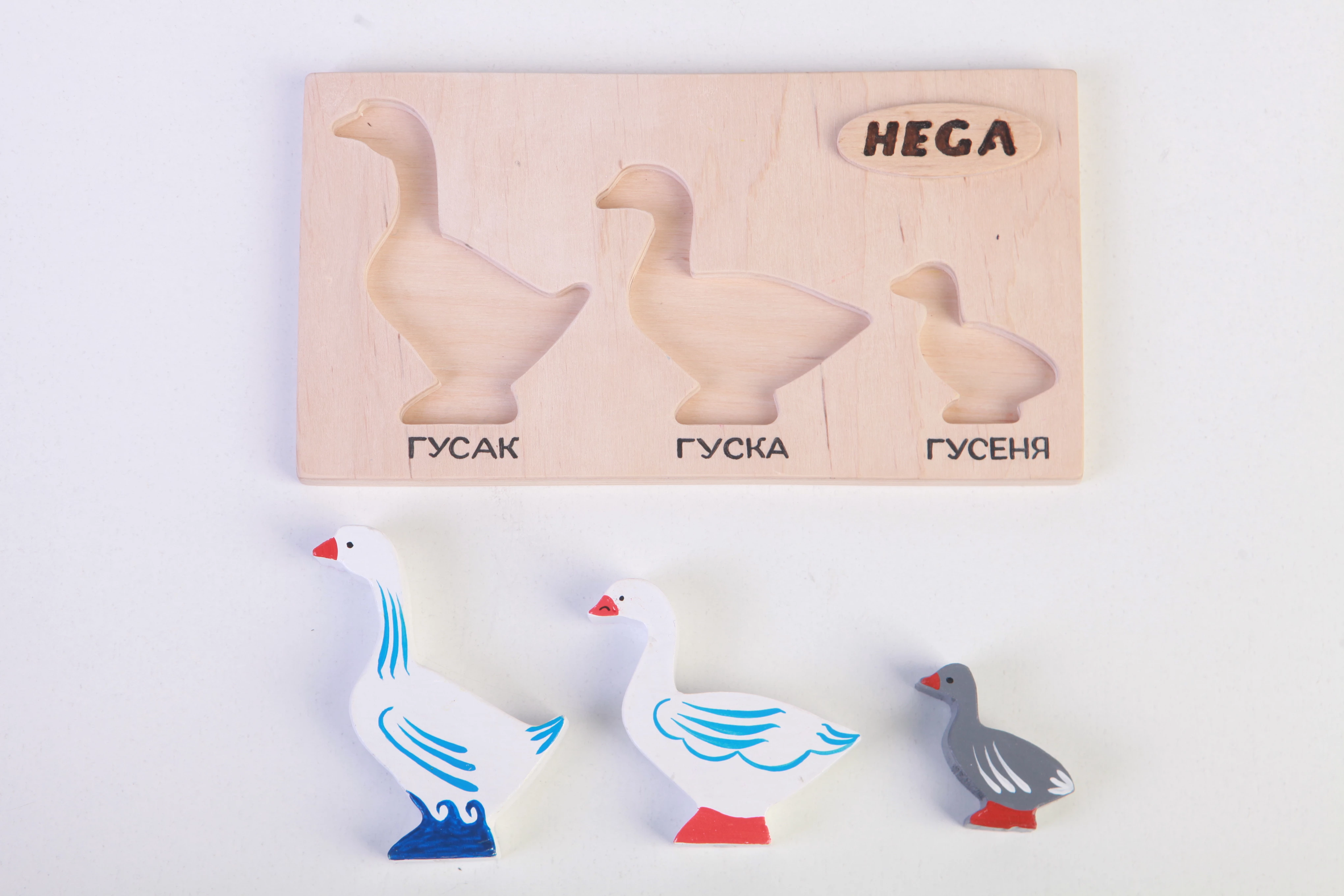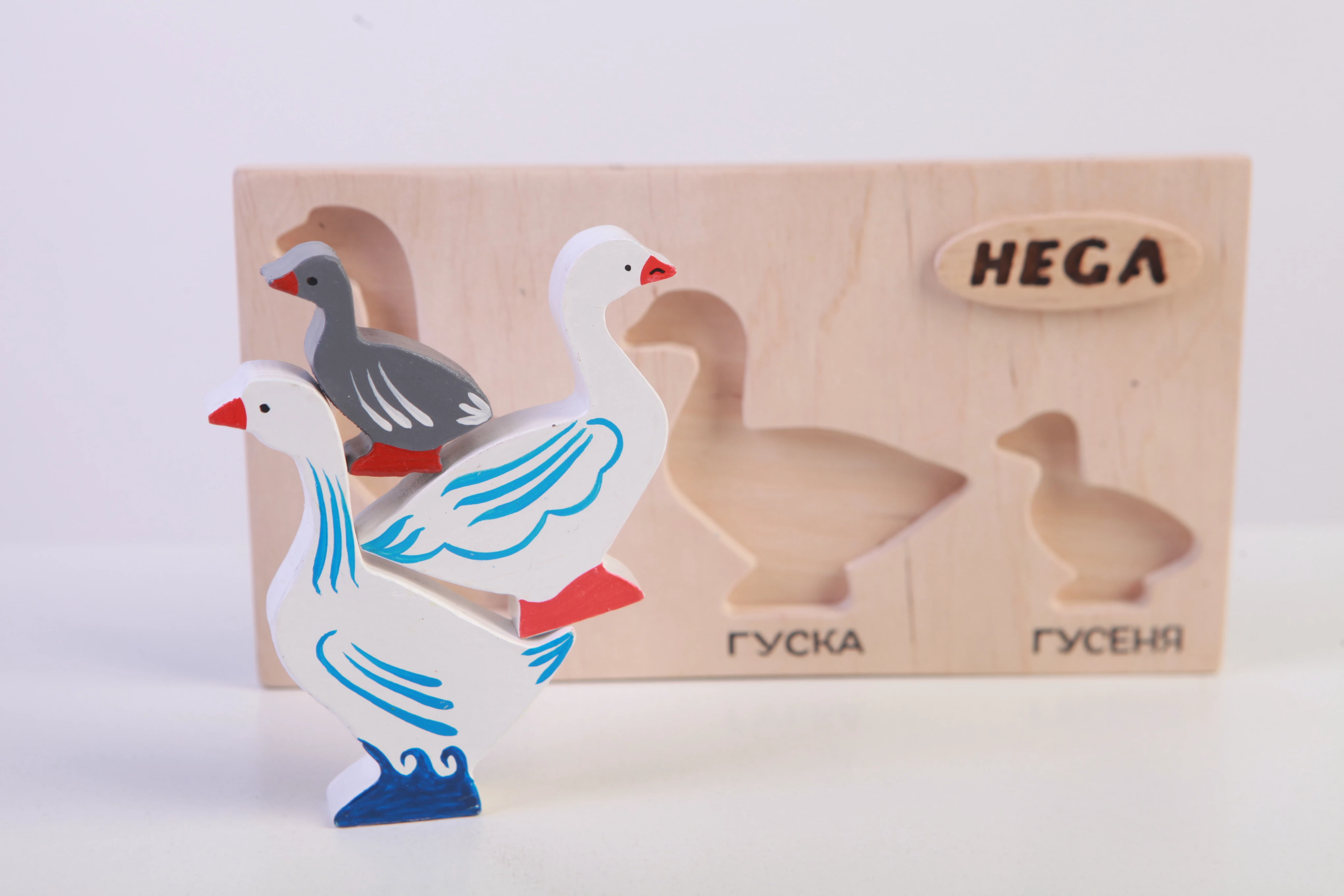 Рамка-вкладыш «Гуси» от торговой марки Hega – это ощутимый вклад в раннее развитие вашего чада. Игрушка из натуральной древесины разрабатывалась с участием детских психологов и педагогов. Набор из натуральных материалов способствует развитию тактильных ощущений и знакомит ребенка с понятиями «объем» и «вес». Крупные деревянные фигурки птиц, входящие в представленный игровой комплект, позволяют развивать координацию движений, мелкую моторику, а также тактильное восприятие.