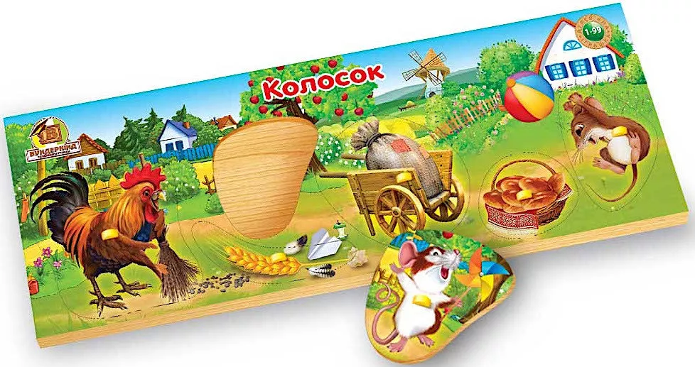 Рамка-вкладыш с любимой сказкой Колосок про трудолюбивого петушка и двух мышат Круть и Верть - отличный методический материал для занятий дома или в садах Монтессори. Во время игры с вкладышами тренируется пространственное мышление, координация рук и глаз, воображение, фантазия и логика.