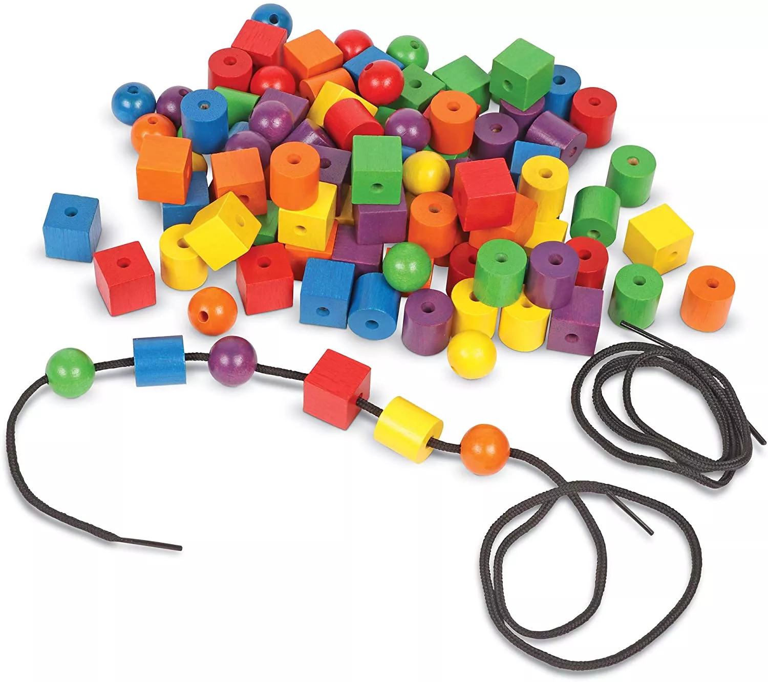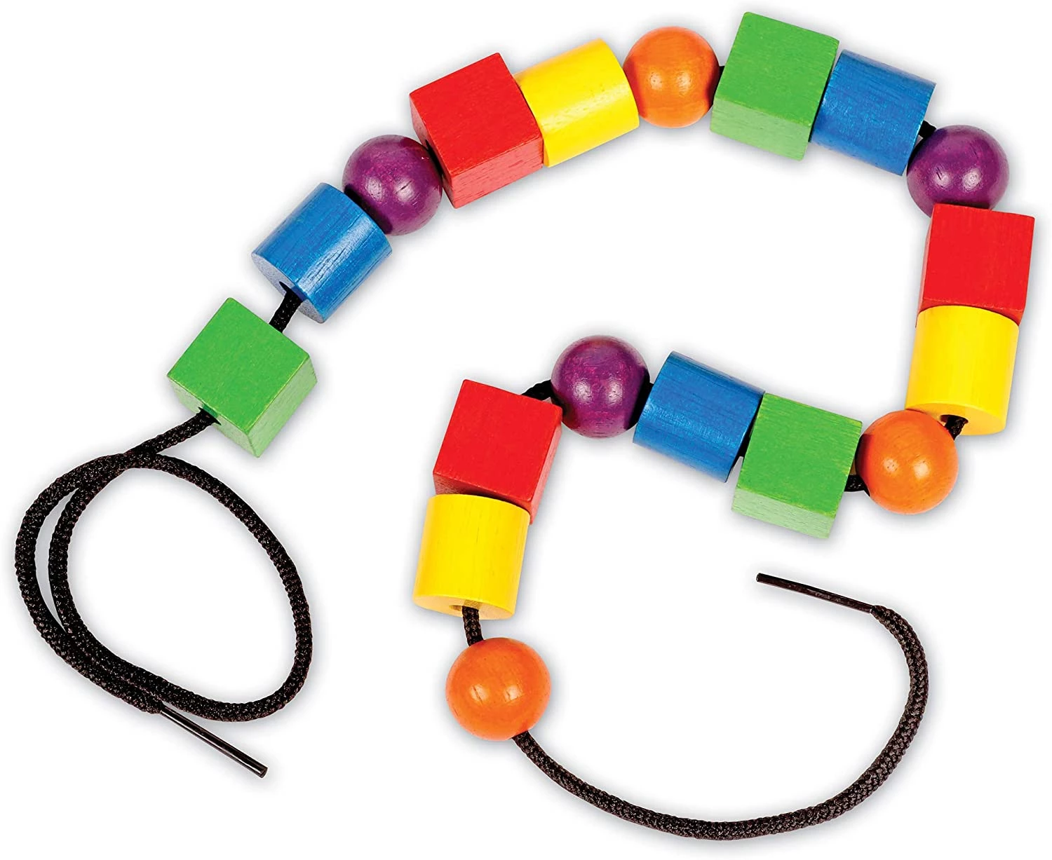 Набор, в котором есть много деревянных бусин, 2 шнурка и ведро для того, что было удобно их хранить. Всем известно, что шнуровка очень положительно влияет на мелкую моторику, логику, фантазию и способствует усидчивости и внимательности. В этом наборе есть три вида бусин: круглые, квадратные и конусные. И все это в разных цветах.