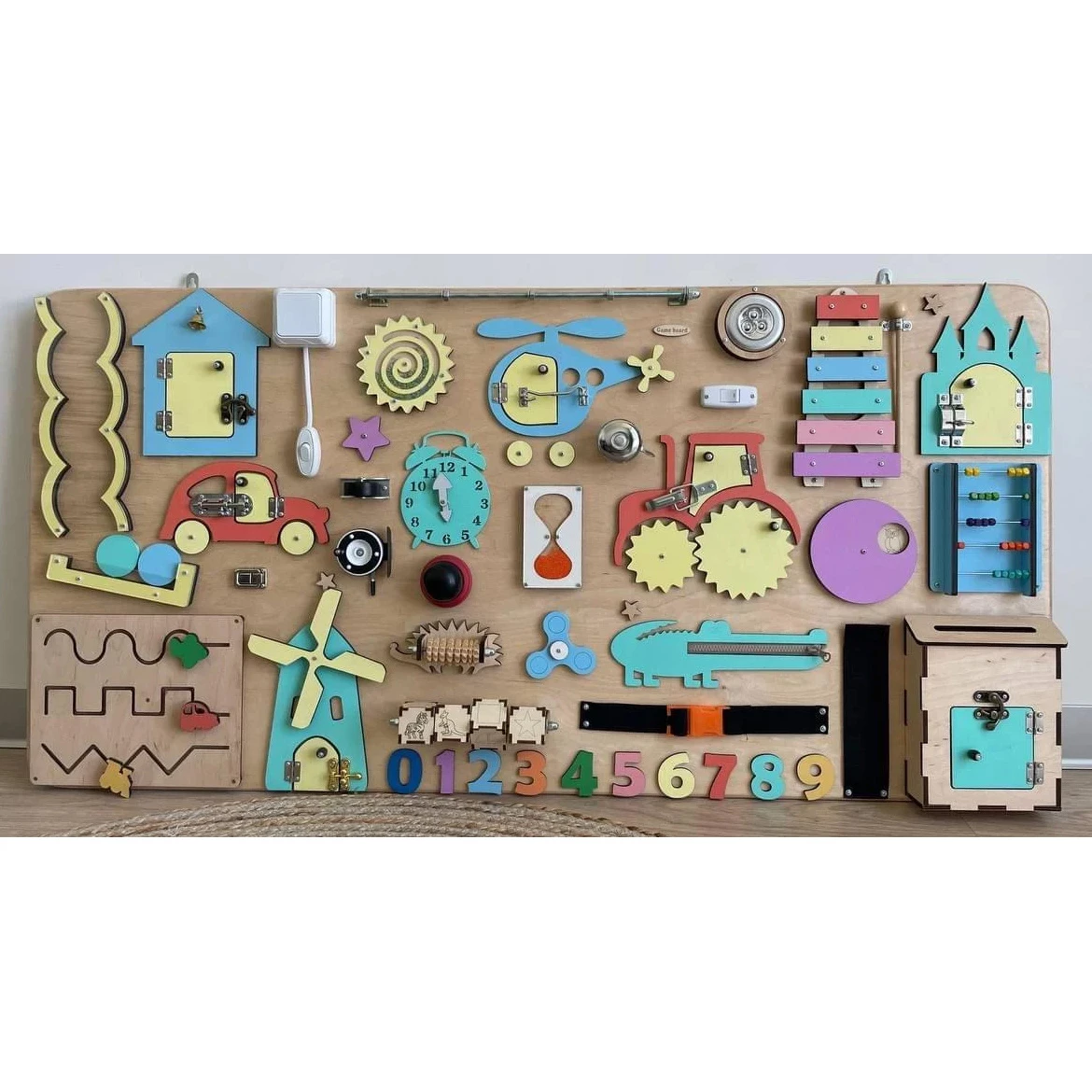 - 1 бизиборд с 45- 50 развивающими элементами.