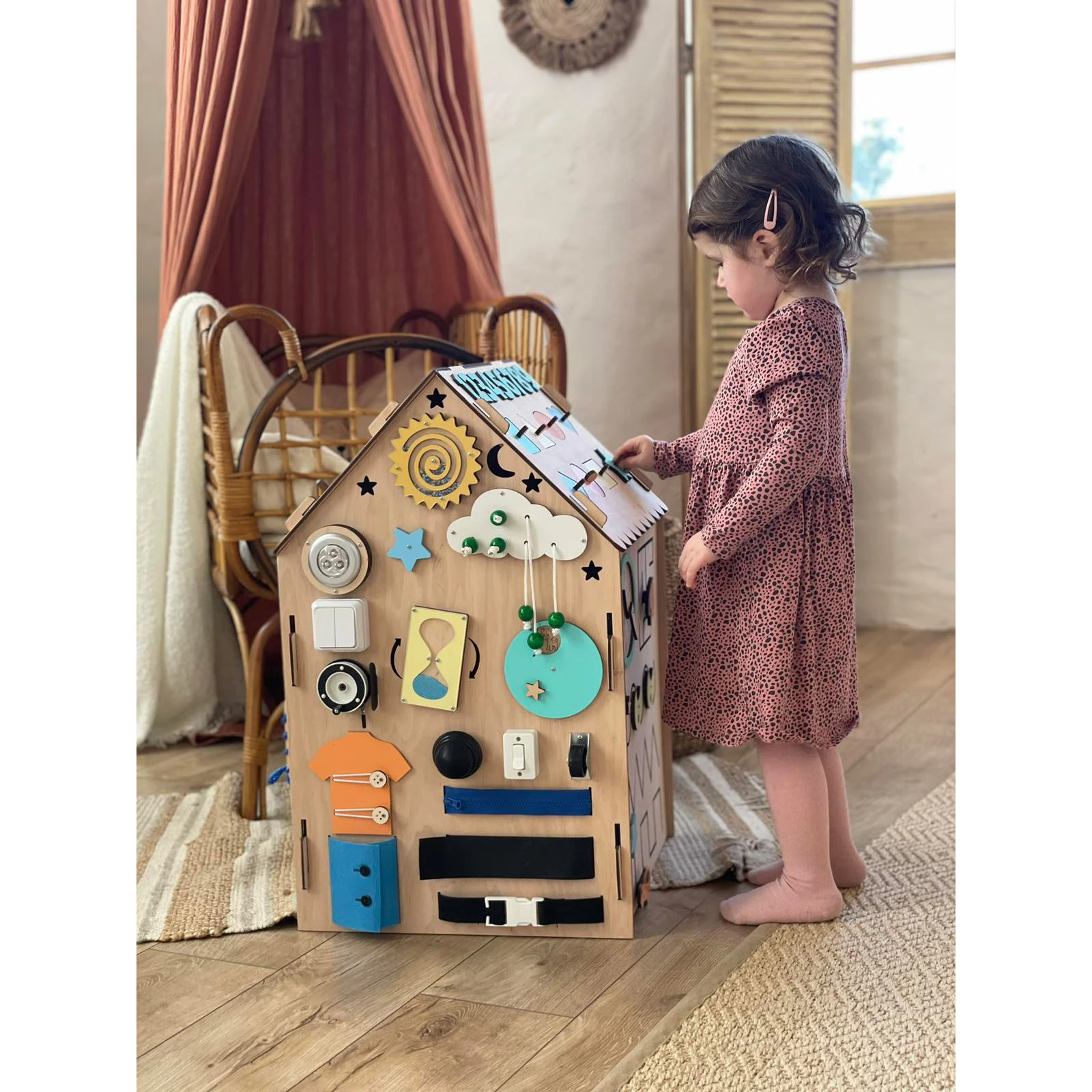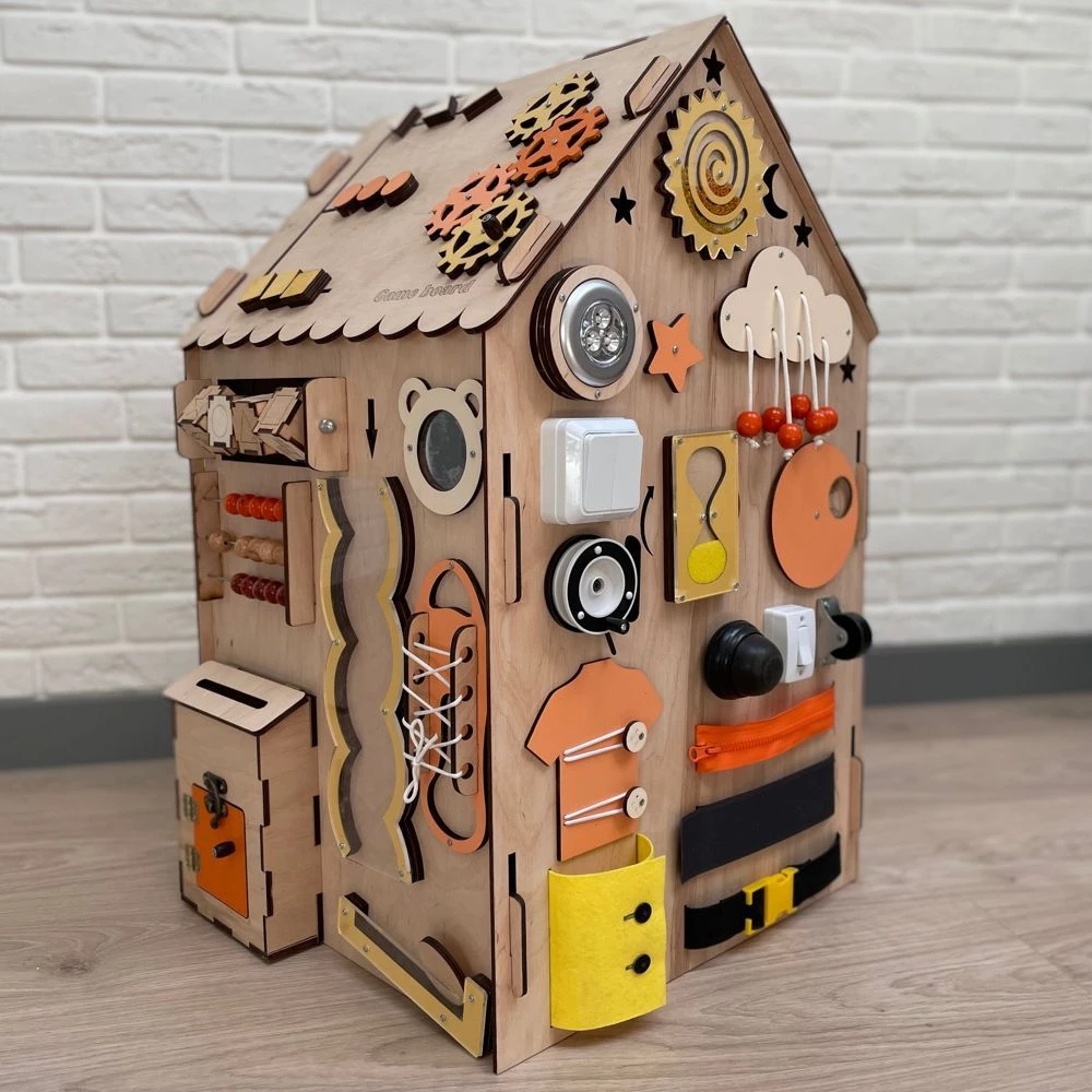 Бизиддом изготовлен из экологически чистых материалов! Играть можно не только одному, но и с друзьями. Домик помогает малышу развить мелкую моторику, координацию движения, внимание, усидчивость, творческое и логическое мышление, дает толчок в освоении бытовой деятельности, а это в свою очередь способствует развитию самостоятельности малыша. Подарите своему ребенку возможность не только играть, но и развиваться!