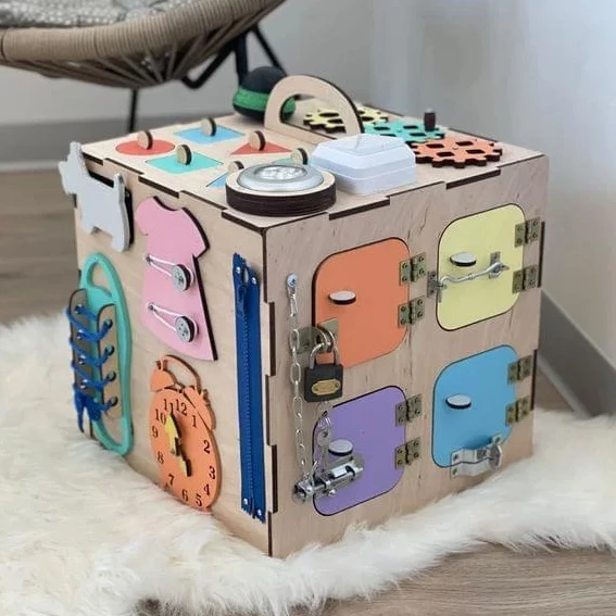 Замечательная развивающая игрушка по методике Марии Монтессори. Поскольку развивающий бизи-комплекс содержит в себе 24 развивающих элементов, он не теряет актуальность несколько лет – каждый день кроха открывает для себя новые свойства развивающих элементов. Бизиборд изготовлен из экологически чистых материалов! Не вызывают аллергии, они полностью безопасны для ребёнка. Играть можно не только одному, но и с друзьями.