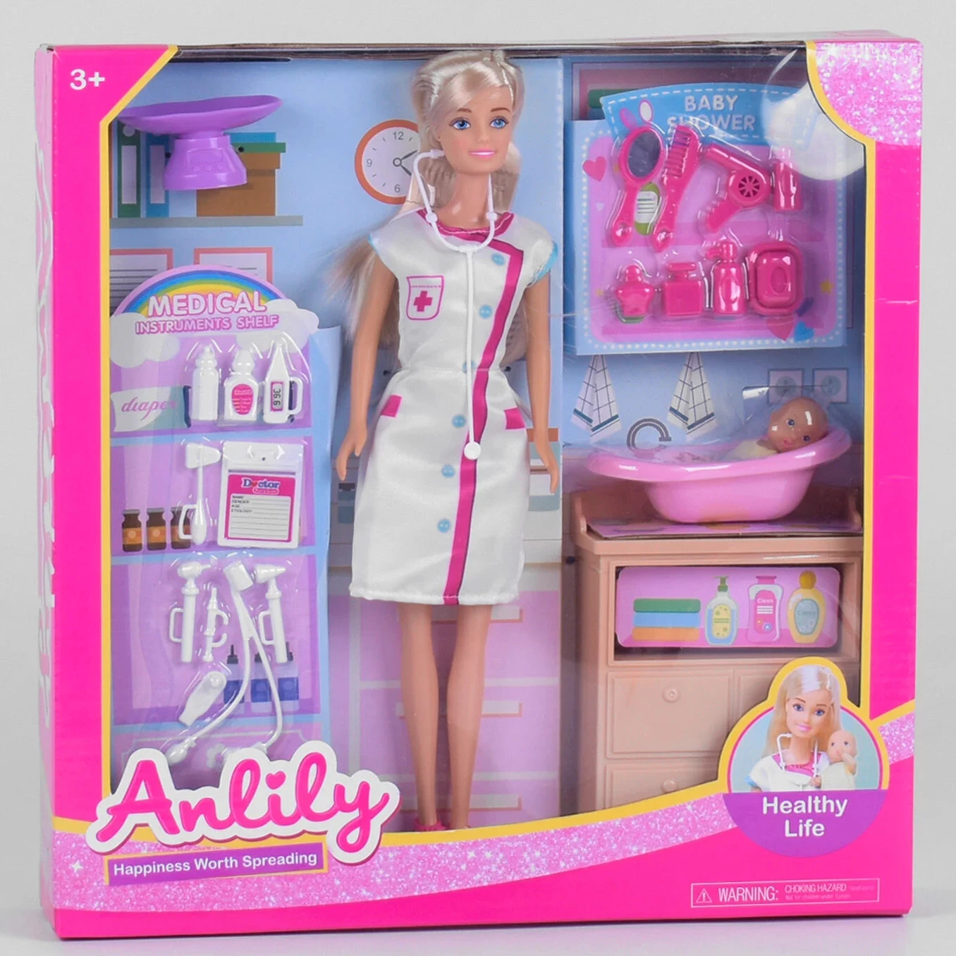 Этот интересный игровой набор с куклой, пупсом и медицинскими аксессуарами станет отличным подарком для девочек в возрасте от трех лет. С ним ваша кроха сможет придумать множество игровых сюжетов на медицинскую тематику.