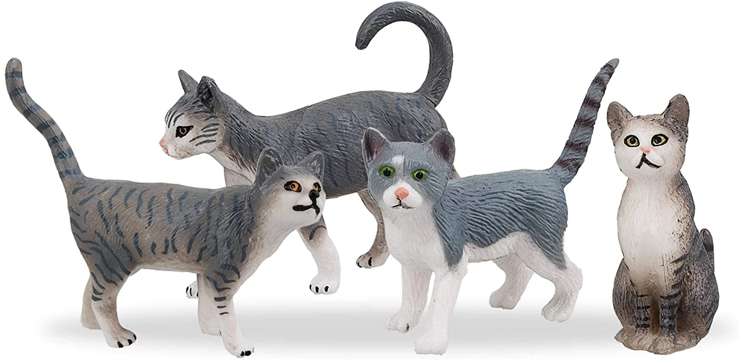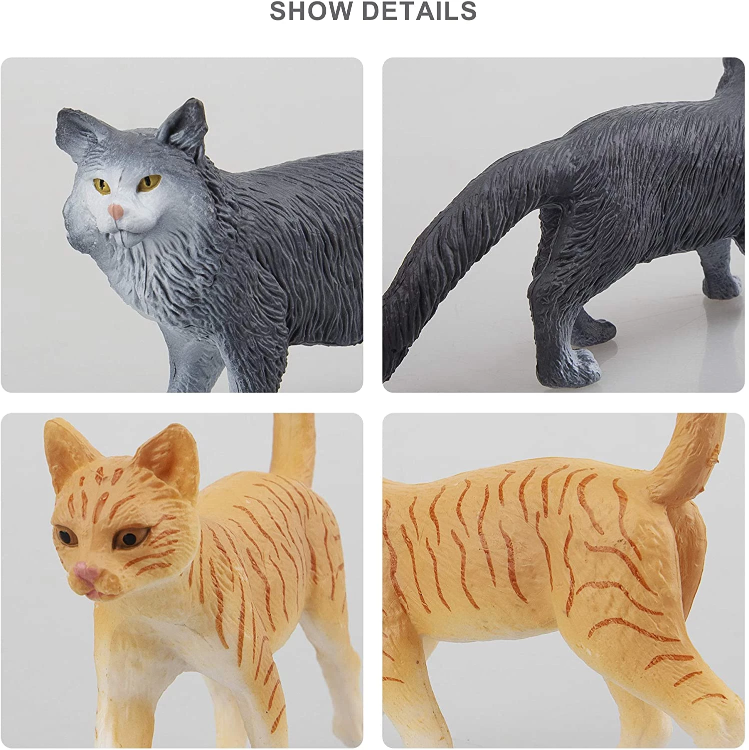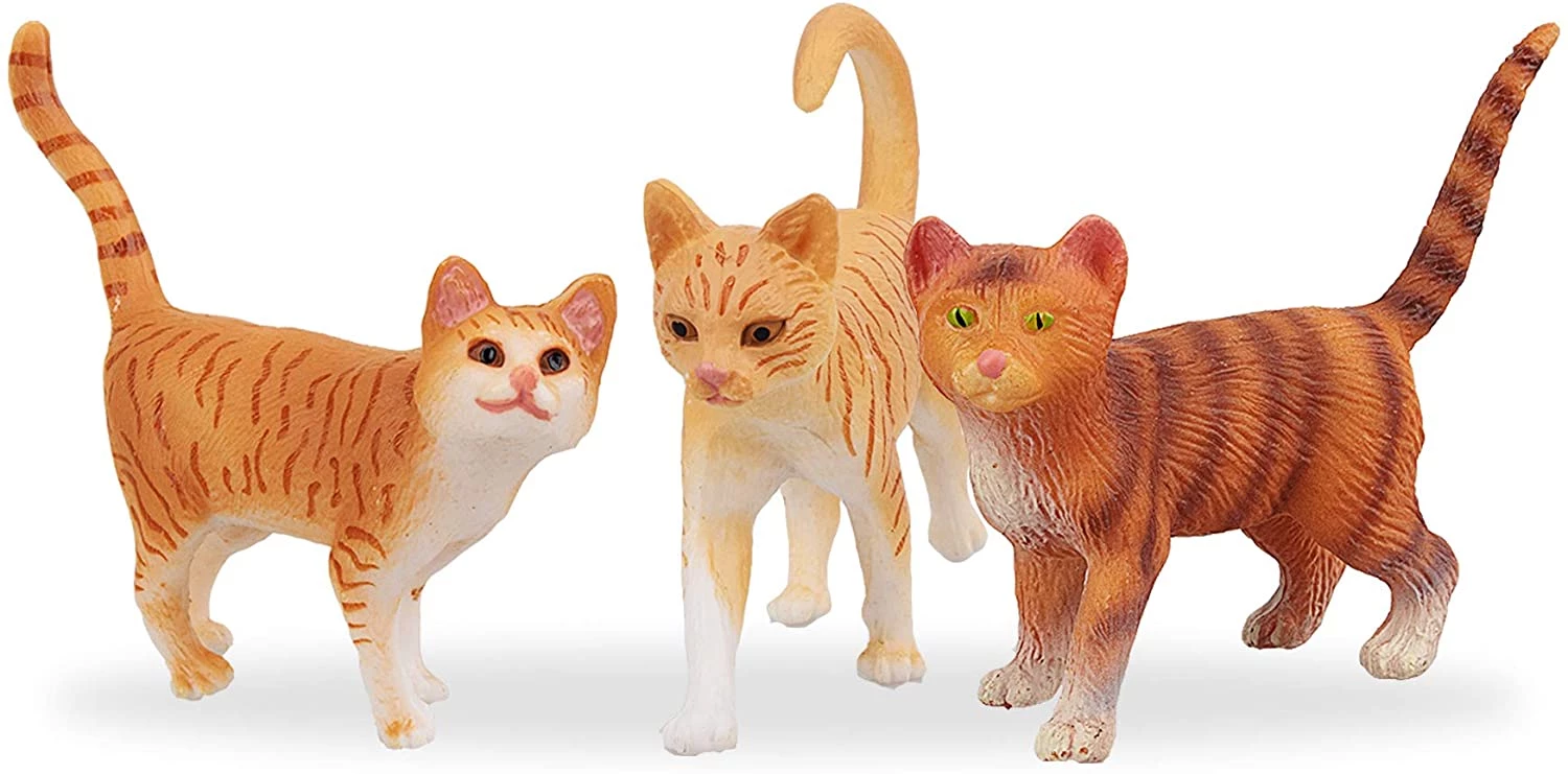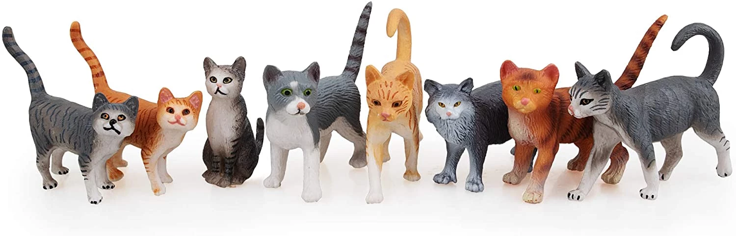 TOYMANY 8PCS Grey and Orange Cat Figurines, Realistic Small