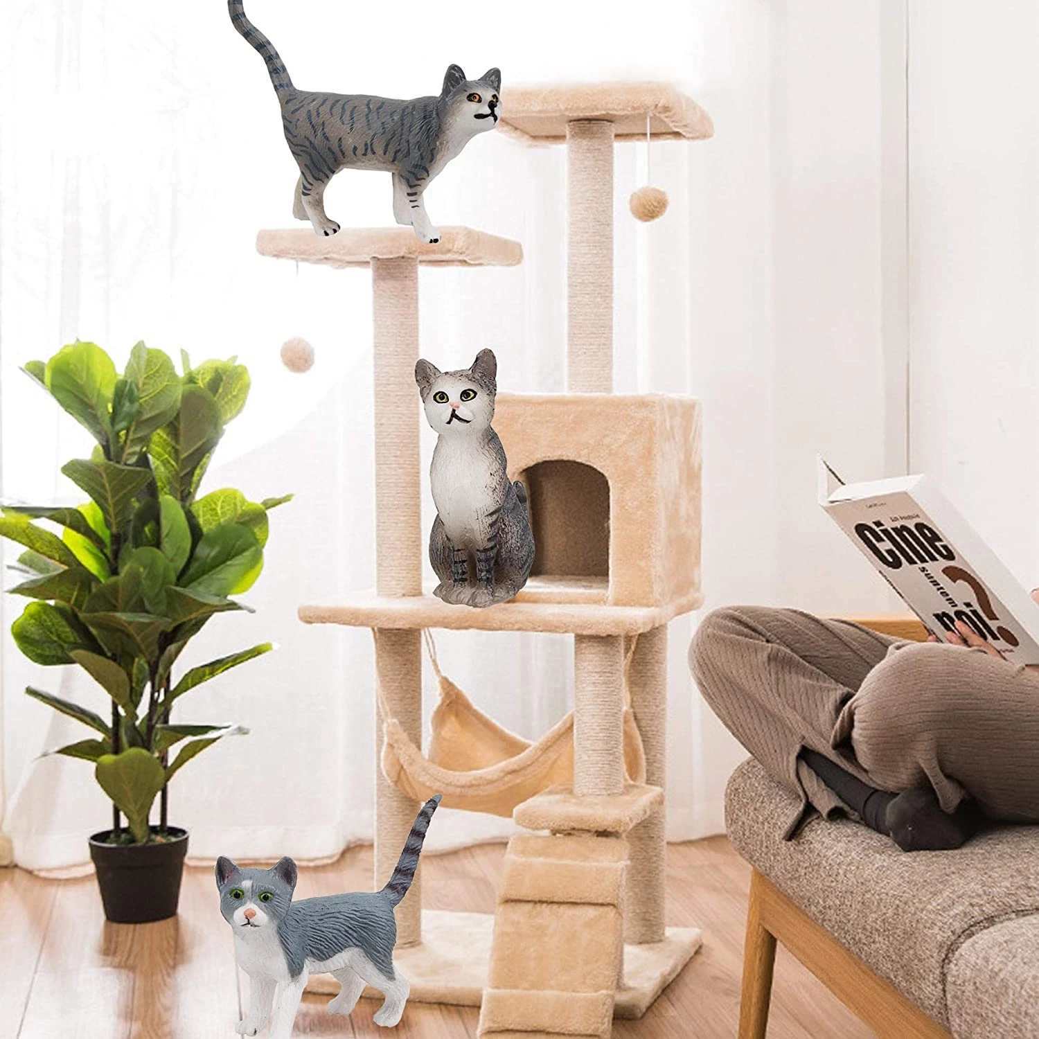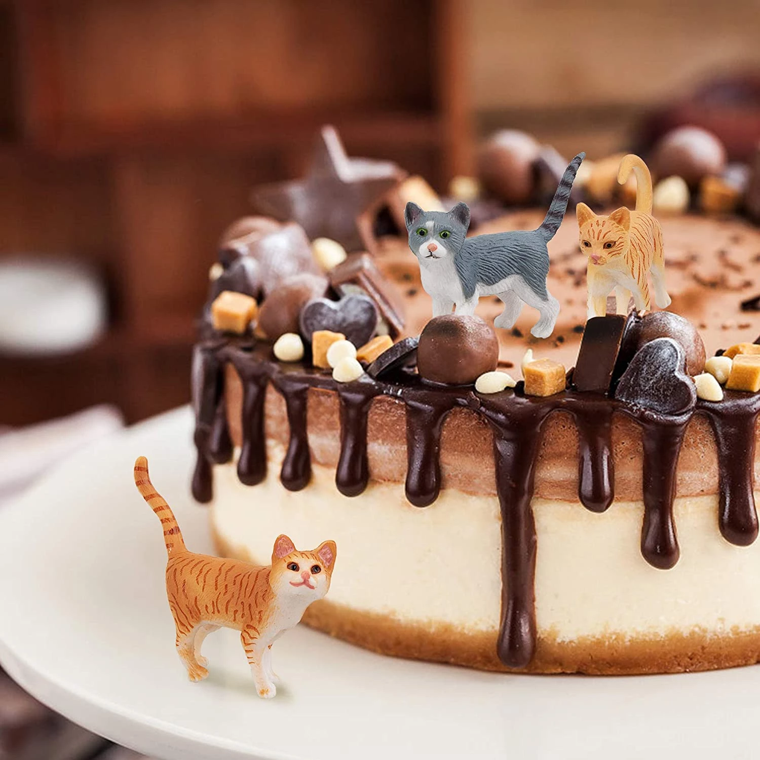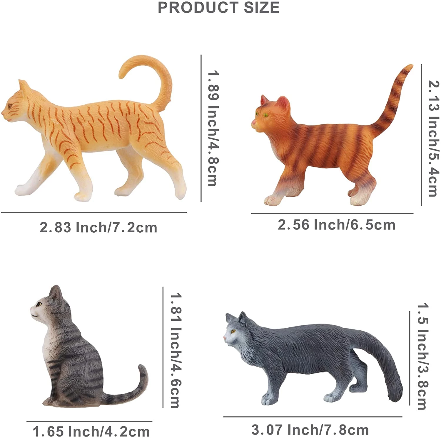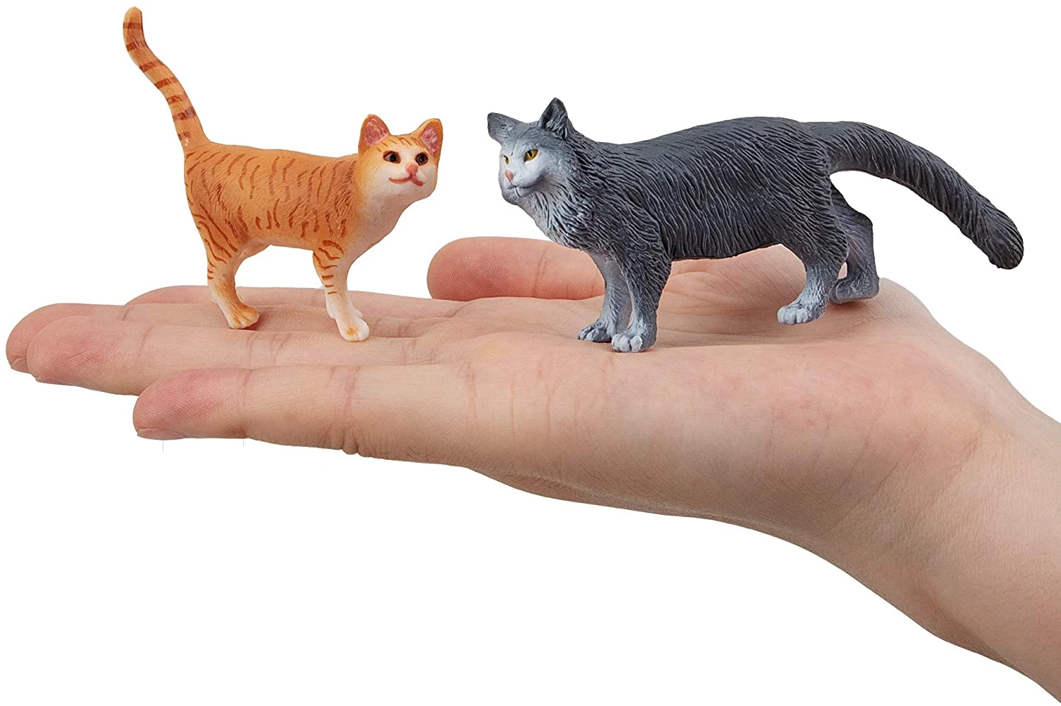 TOYMANY 8PCS Grey and Orange Cat Figurines, Realistic Small