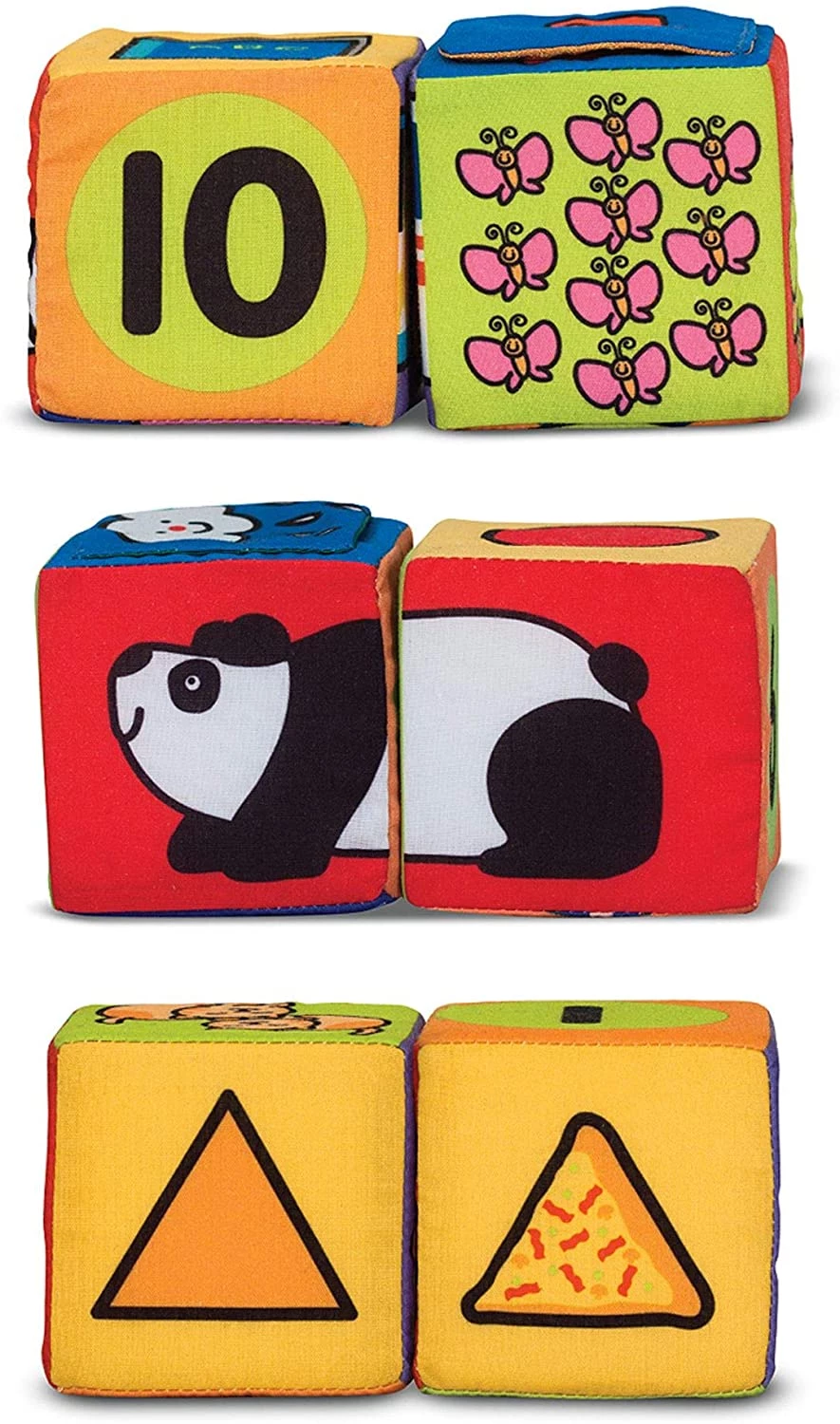 Яркий набор мягких кубиков и треугольников увлечет внимание малыша на долгое время. Во время игры дети учат цифры (например, 10), собирают картинки (например, 10 бабочек) и просто играют с кубиками. Кубики мягкие и легкие, без острых углов.