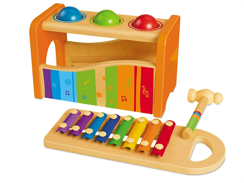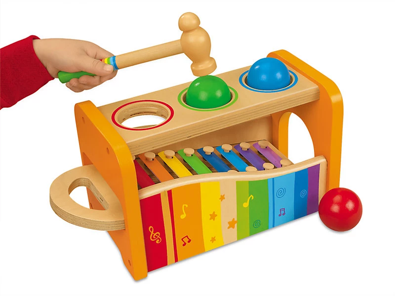Этот яркий музыкальный набор понравится всем юным меломанам. Молоточком нужно выбить шарики, они падают на ксилофон внутри и катятся - получается настоящая мелодия. А можно вытащить ксилофон и молоточком создавать свои собственные мелодии.