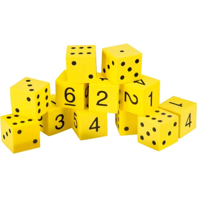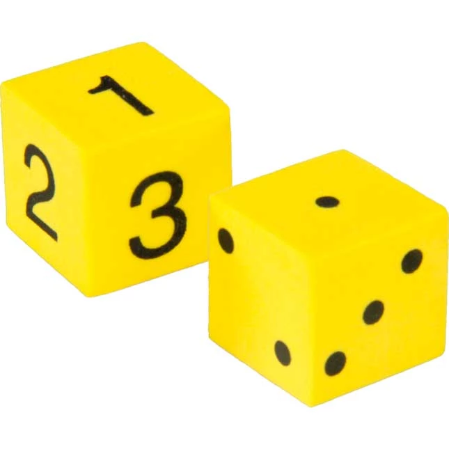 Большой набор мягких игровых кубиков в пластиковом контейнере. Кубики с числами 1-6 и точками от 1 до 6. Размер кубика 2 см.
