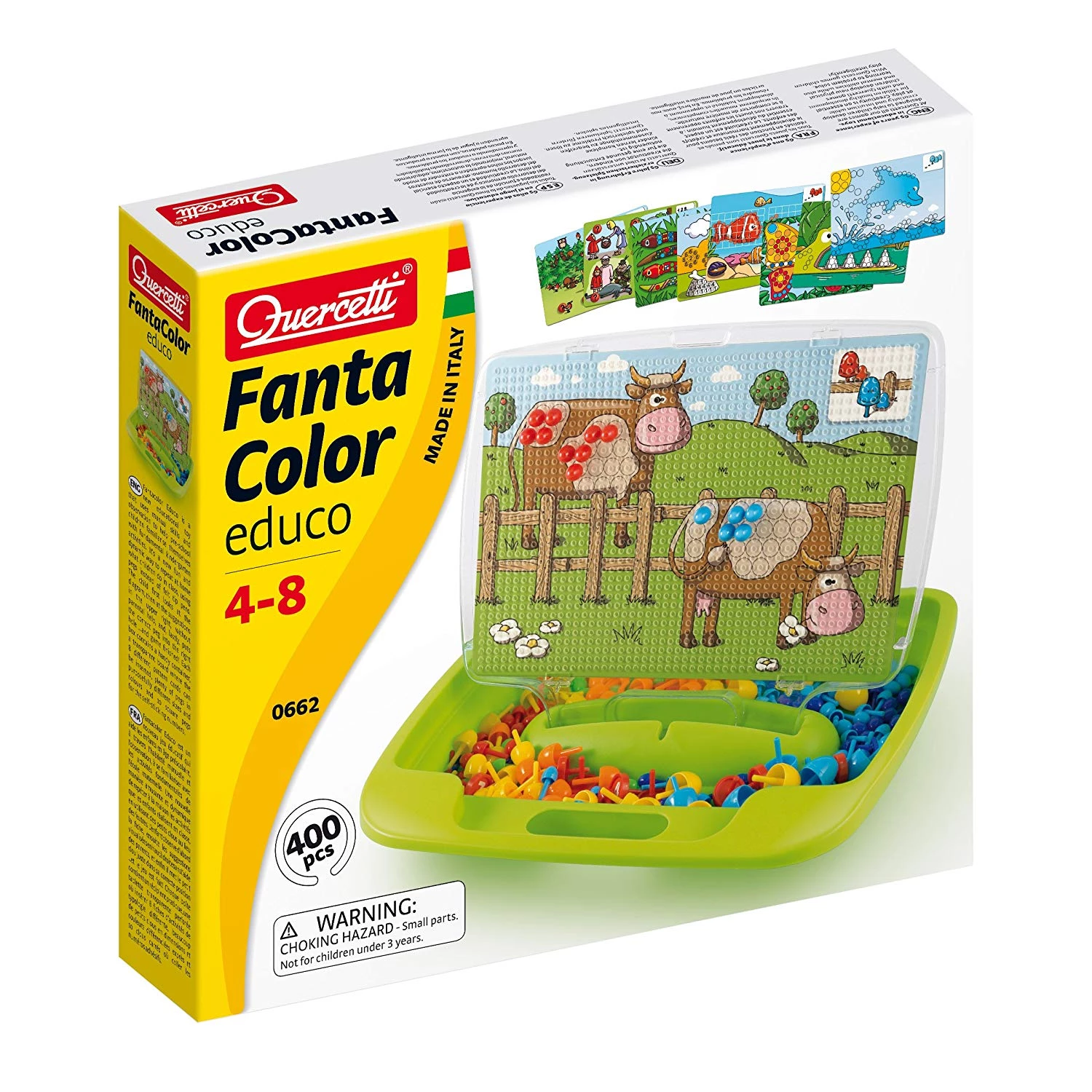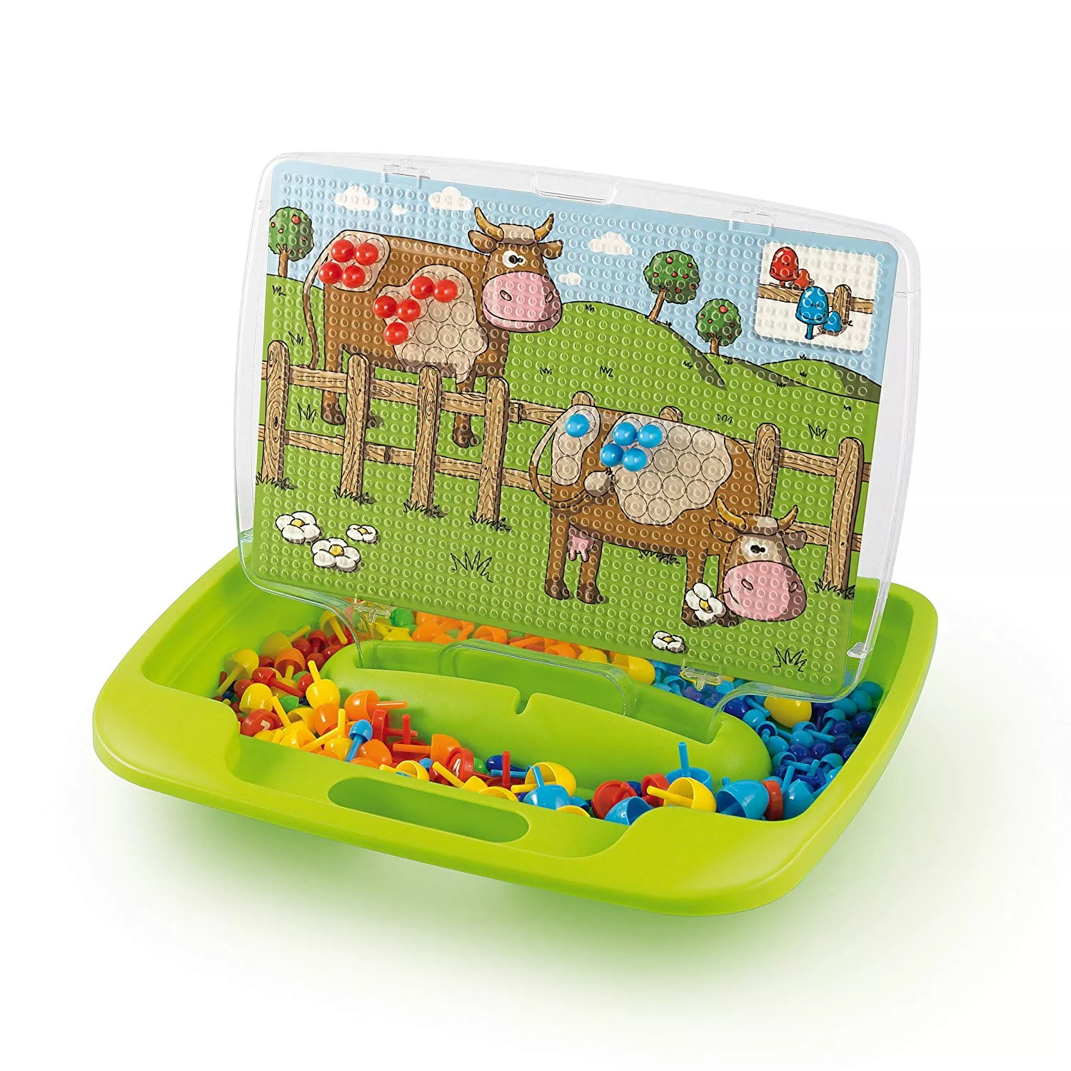 Это новая обучающая игрушка, которая помогает детям знакомиться с основными навыками. Сначала ребенок смотрит на карточку, затем, помешает мозаику нужного цвета в отверстия на картинке.