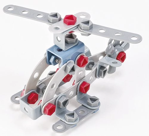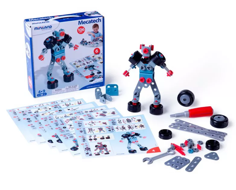 С этим набором дети могут создавать разных роботов или модели техники, используя инструкцию с пошаговыми подсказками.