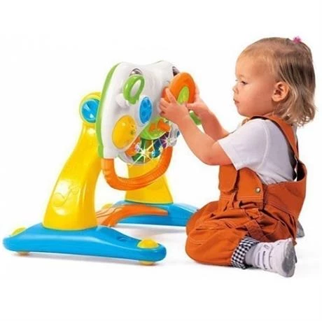 В одной игрушке и ходунки, и каталка, и игровой и музыкальный центр. Реалистичные звуки вождения. В игровом центре удобная ручка, чтобы ребенок мог стоять и ходить. Задние колеса центра с дополнительным сопротивлением для безопасности ребенка. Веселые мелодии, смешные звуки животных и мигающие клавиши привлекут внимание малыша.