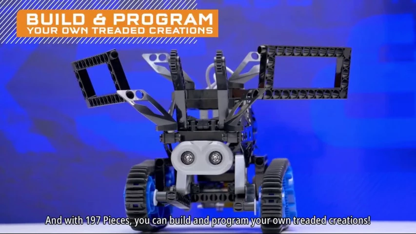 8 моделей роботов можно создать с этим конструктором, программируя их планшетом или смартфоном. Набор учит основам робототехники, физики, инженерии и информатики. Для передвижения, модели используют гусеничные ленты. С помощью простого приложения, дети пишут код программы. Подключается к моделям через Bluetooth.