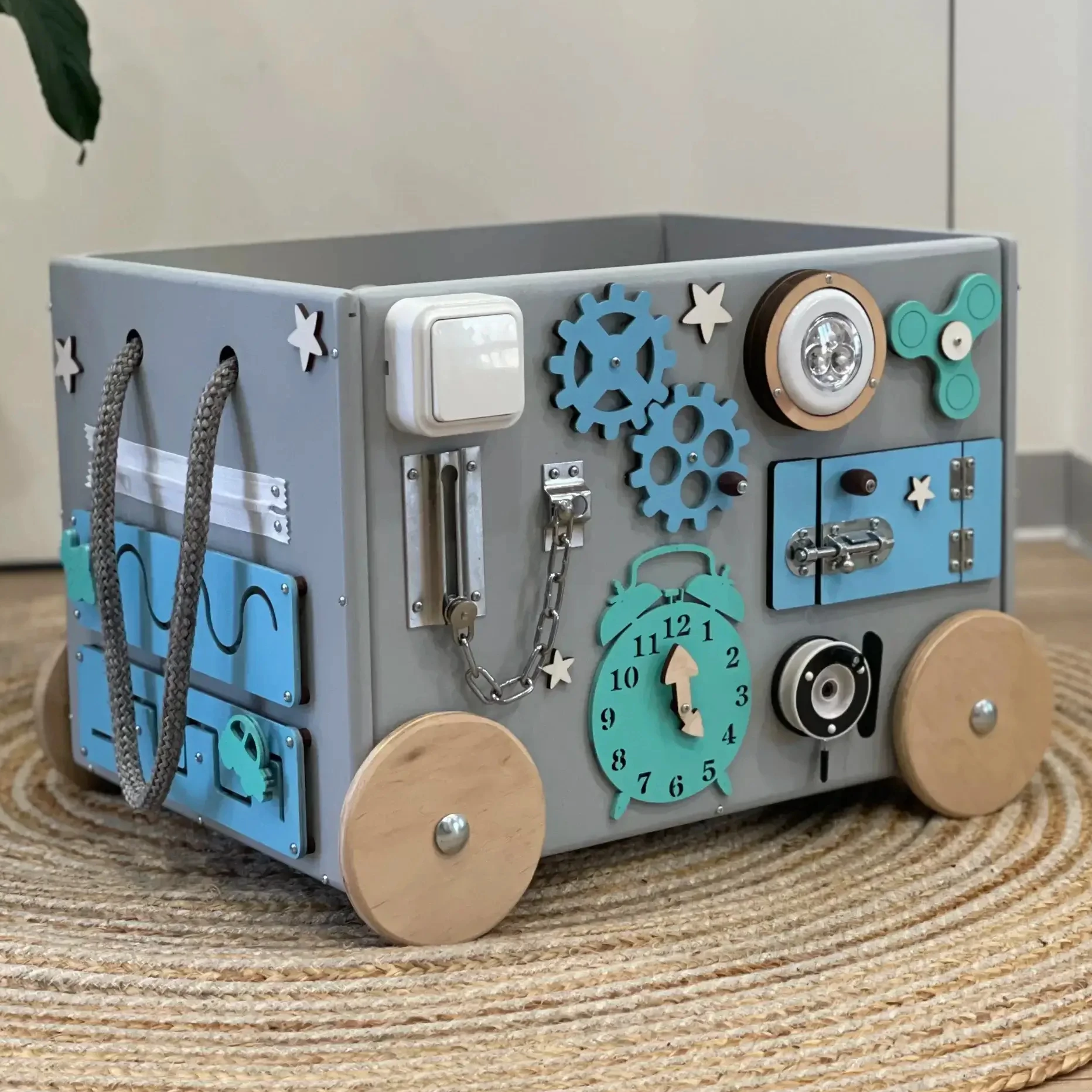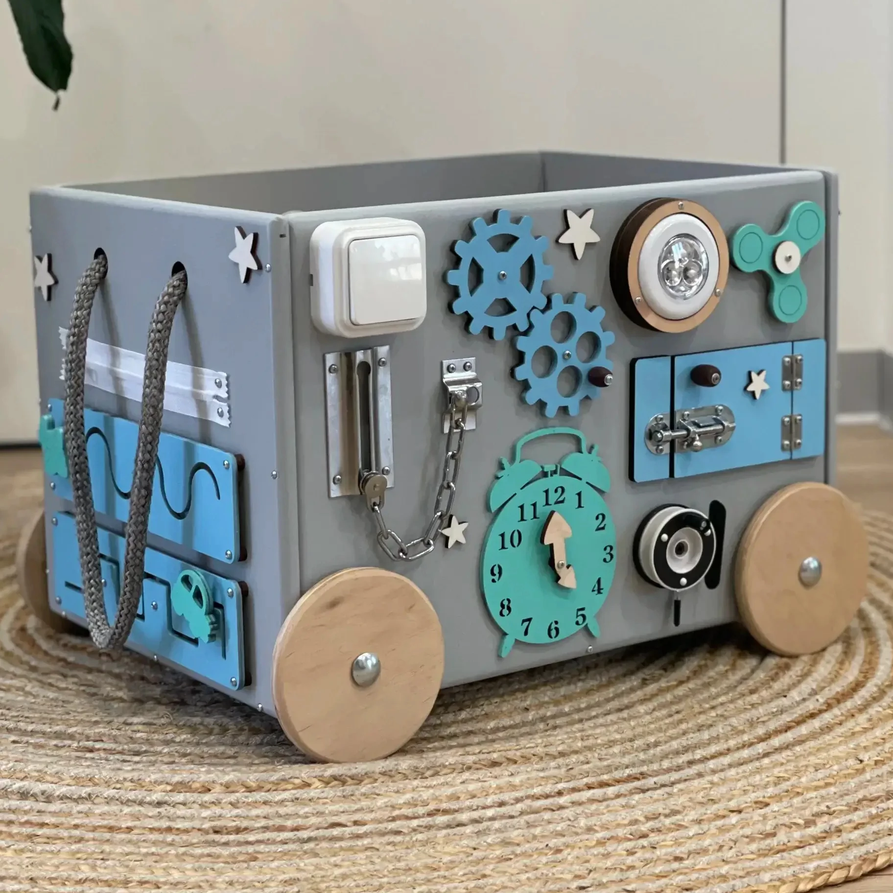 Второй, не менее важный элемент, — это интерактивная развивающая панель. Она буквально насыщена полезными функциями: шестеренки, замочки, выключатели, дверцы и разнообразные тактильные элементы, которые активно развивают мелкую моторику, координацию, логику и внимание. Изделие выполнено из натуральной фанеры с безопасным гипоаллергенным покрытием, а его стильный дизайн в пастельных тонах идеально впишется в любой современный интерьер.