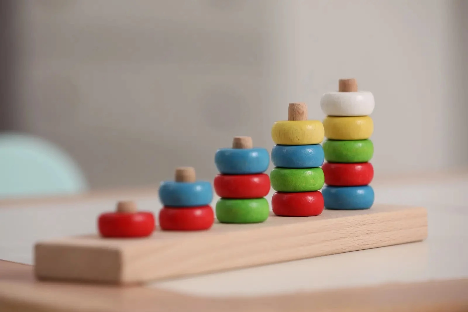 Разрабатывая эту игрушку, производитель вдохновлялся идеями небезызвестной Марии Монтессори. Набор включает в себя основу со стержнями, а также разноцветные кольца. Нанизывая колечки на стержни, кроха будет развивать сенсорные способности, моторику, координацию движений, глазомер, навыки сортировки. Игрушка состоит из 15 деревянных колечек, выполненных в пяти цветах: белом, желтом, зеленом, голубом и красном. Их необходимо нанизывать на деревянные штыри в определенном порядке — от одного до пяти. Сортер имеет обучающую функцию — он призван познакомить ребенка с основами счета в диапазоне от 1 до 15.