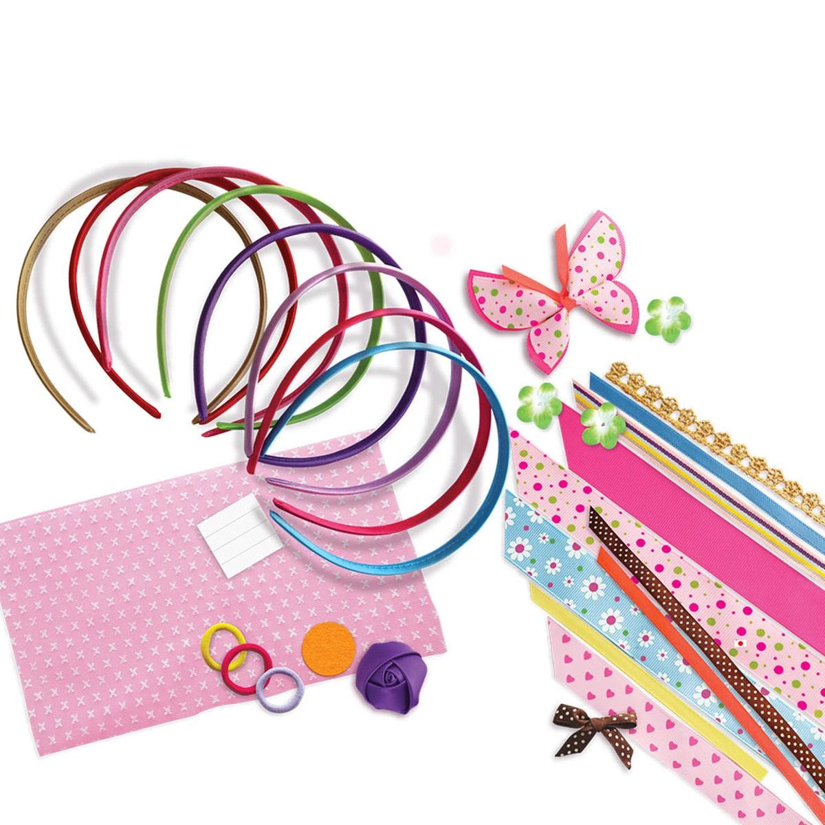 Удивительный набор, который поможет вашей юной моднице создать свои неповторимые обручи для волос. В комплекте вы найдете 8 основ для обручей, ленты, цветочки и другие аксессуары, которые непременно помогут пробудить фантазию и создать свое индивидуальное и неповторимое украшение. В наборе есть подробная инструкция, в которой все подробно написано и показано.