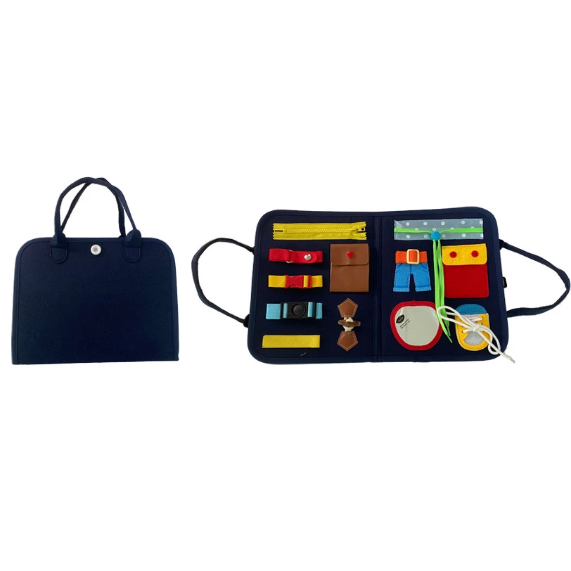 Развивающий набор прекрасно подходит для детей от двух лет. Малышам очень сложно научиться справляться со всевозможными застёжками, так как все они имеют разный принцип. В папке собраны самые популярные 14 видов застежек, которые помогут ребенку обрести навыки для повседневной жизни. Это очень хорошо развивает моторику, логику, ловкость и соответственно речь. Дети с огромным удовольствием открывают и закрывают молнии, завязывают бантики, застёгивают кнопки и замочки.