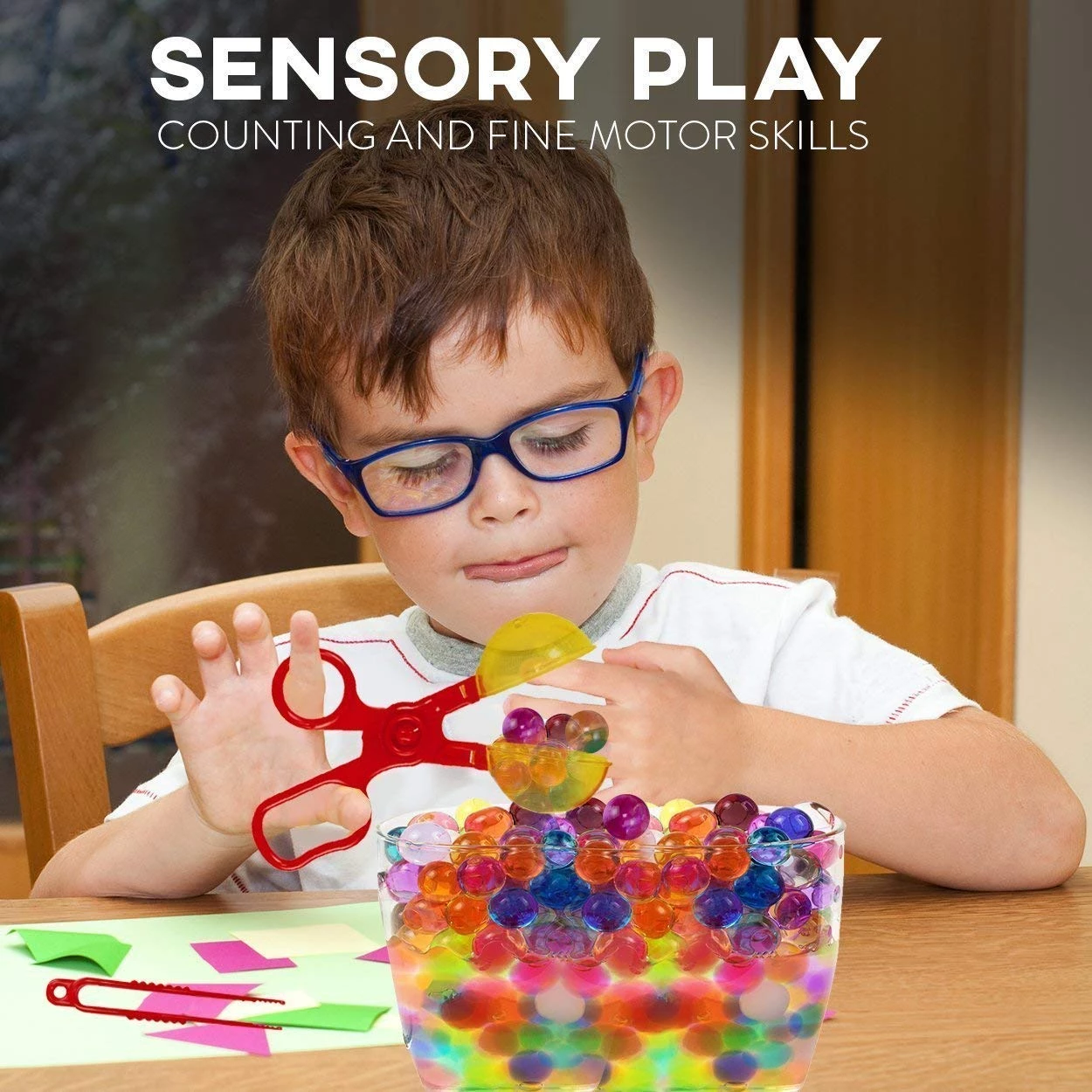 С этими сенсорными бусинами, можно изучать цвета, текстуры и развивать воображение. Щипцы и пинцеты развивают координацию рук и глаз, а привлекательные цвета способствуют сортировке и смешиванию цветов.
