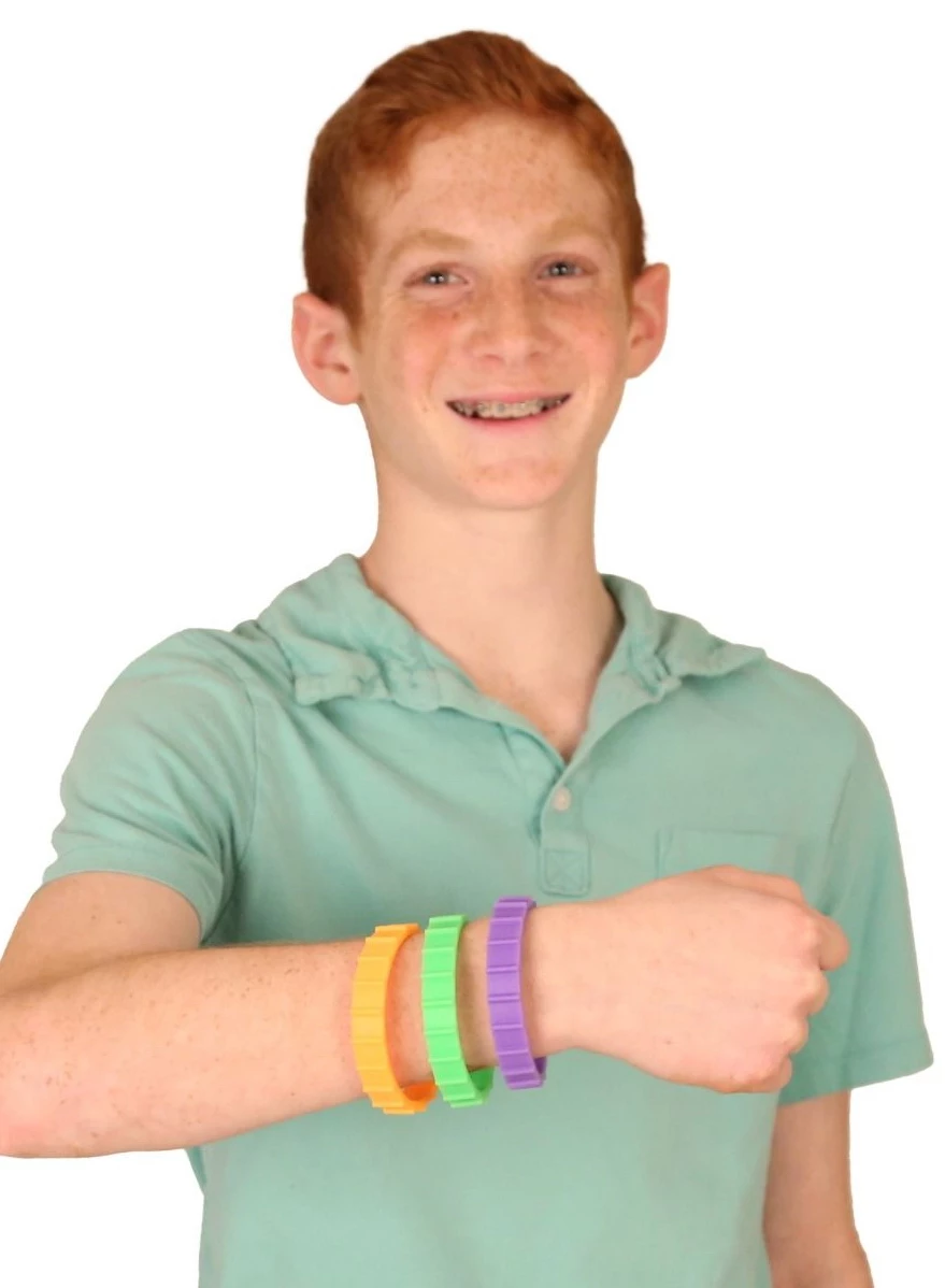 Специальные жевательные ремешки предназначены для непосед, которые любят тянуть все в рот. Браслеты имеют рельефную поверхность, которую интересно облизывать, кусать и тянуть. Изделия показали свою эффективность и функциональность при СДВГ, благодаря тактильной стимуляции. Браслеты помогают успокоить нервную систему, снять стресс и сосредоточиться. Браслеты также идеально подходят для непосед, помогая сосредоточиться и успокоиться.