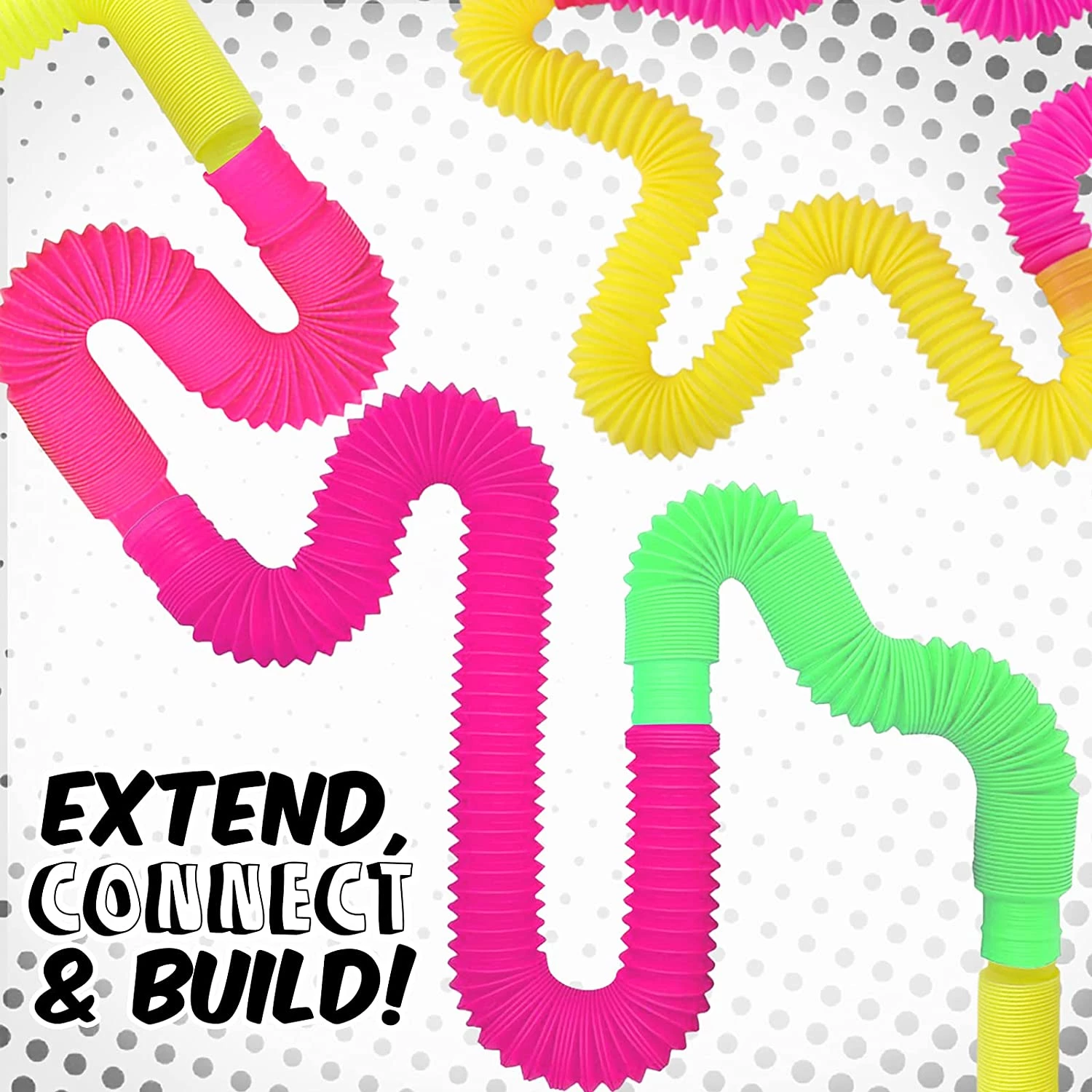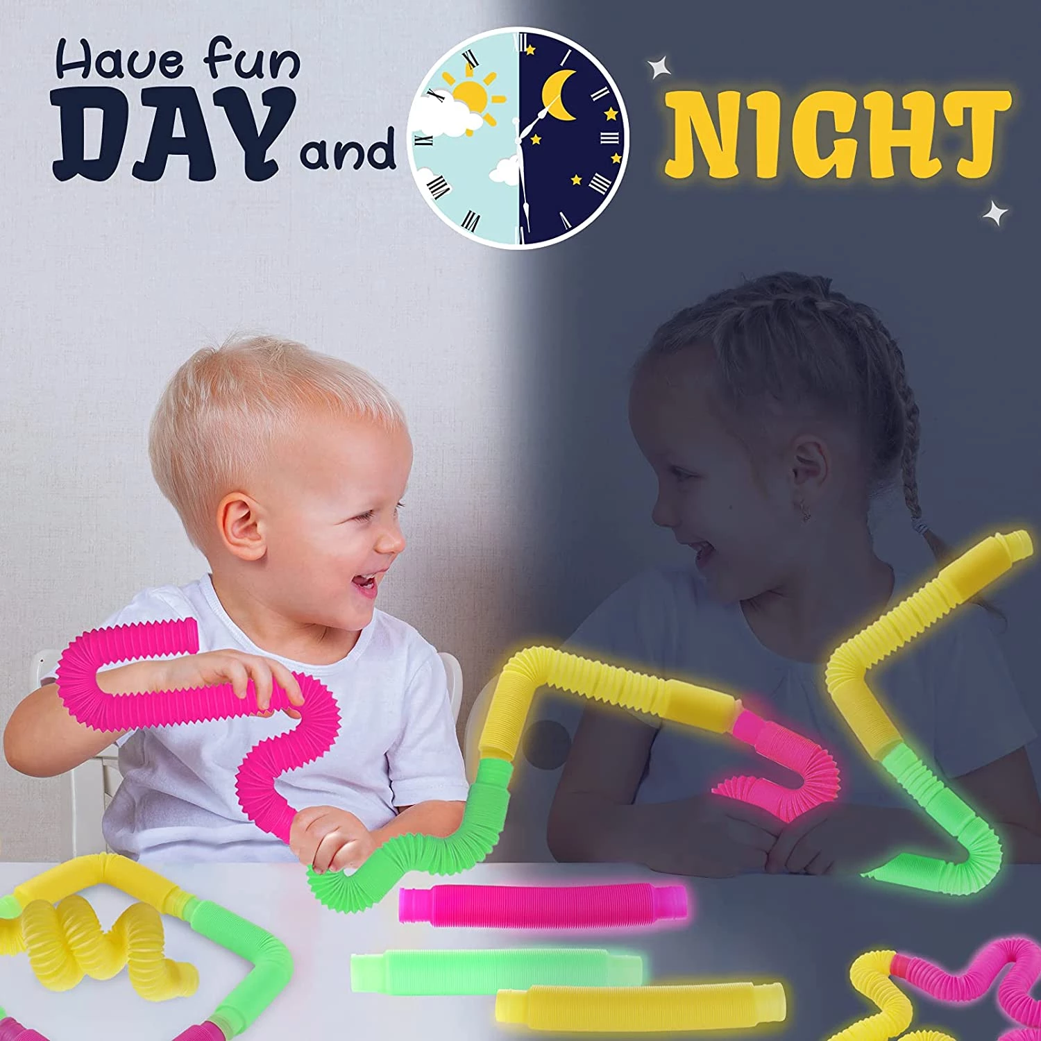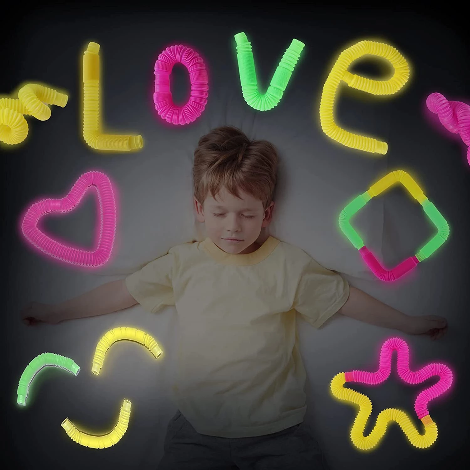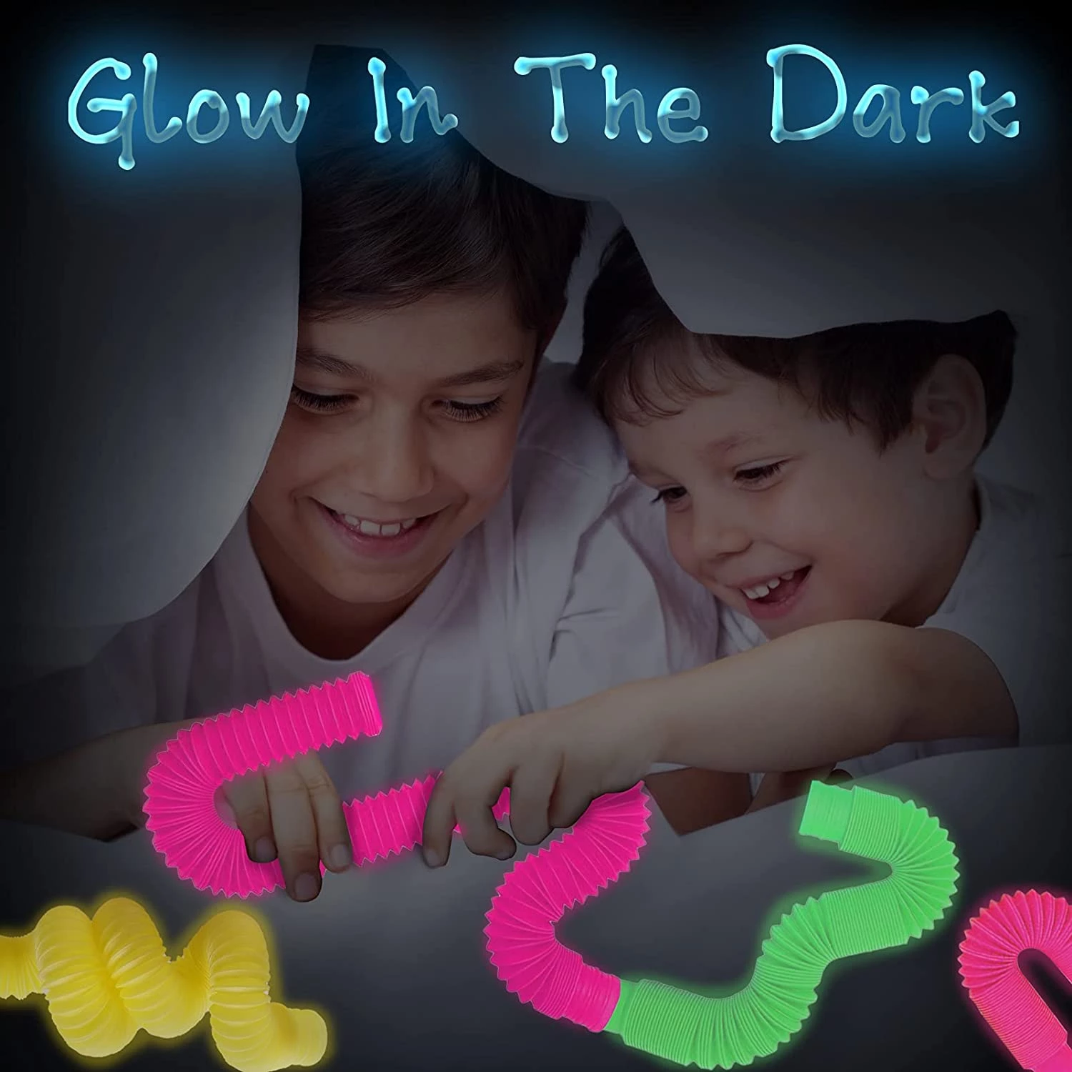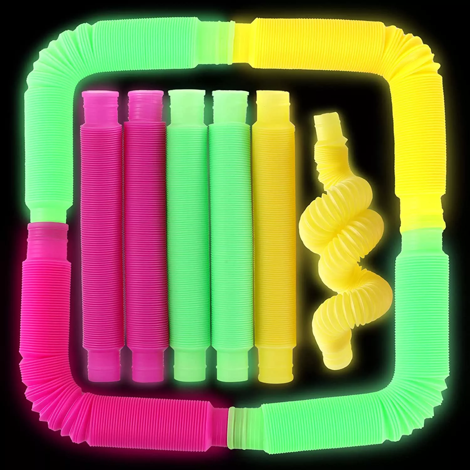 ZaxiDeel Glow in The Dark Pop Tubes for Kids and Adults 6 Pack, Luminous Sensory Stretch Pop Tube
